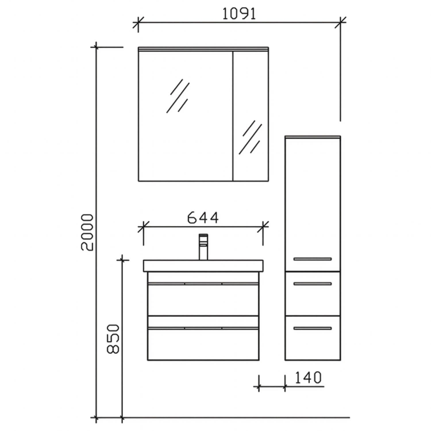 Pelipal Balto Badmöbel-Set 64,4 cm, inkl. Spiegelschrank und Midischrank