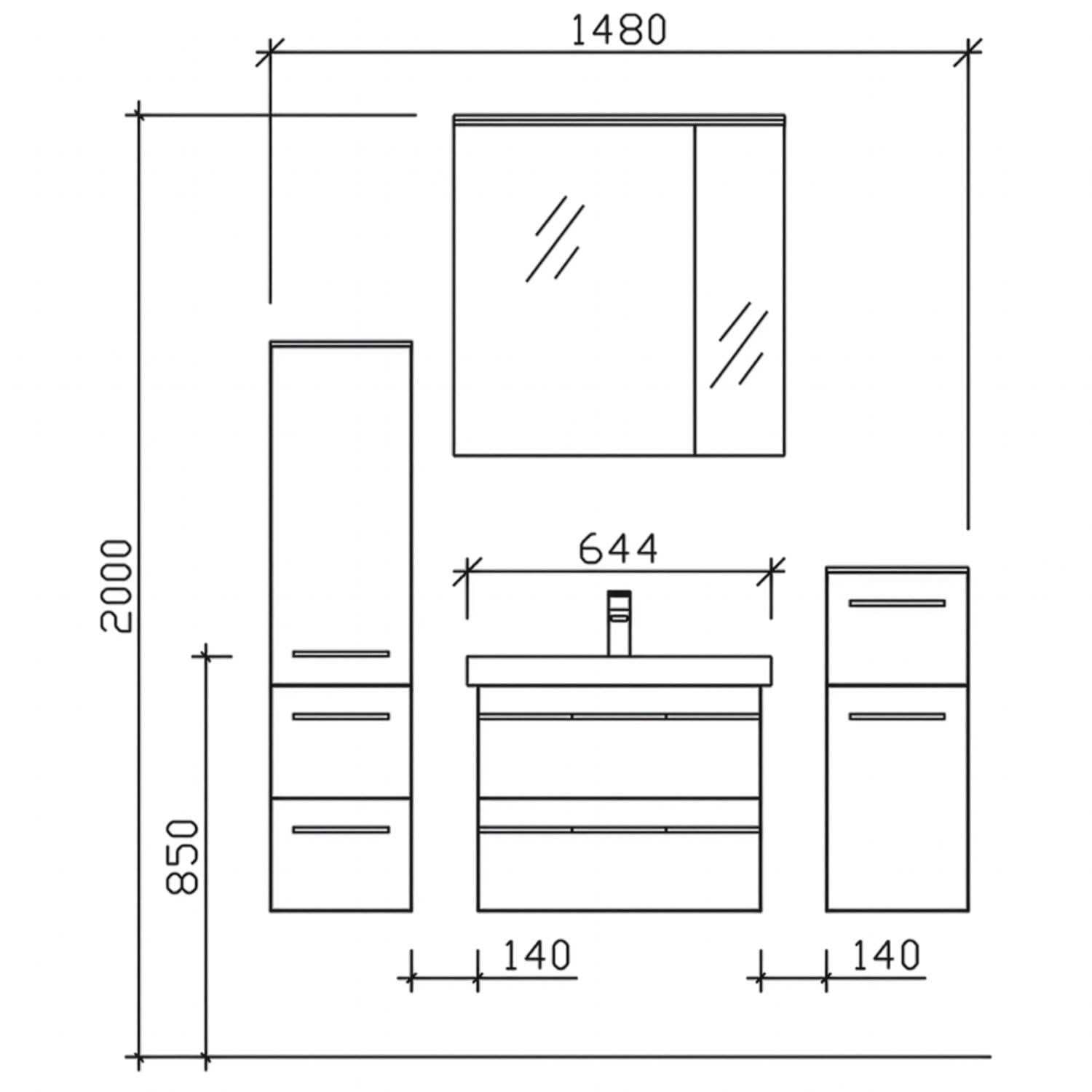 Pelipal Balto Badmöbel-Set 64,4 cm, inkl. Spiegelschrank, Highboard und Midischrank
