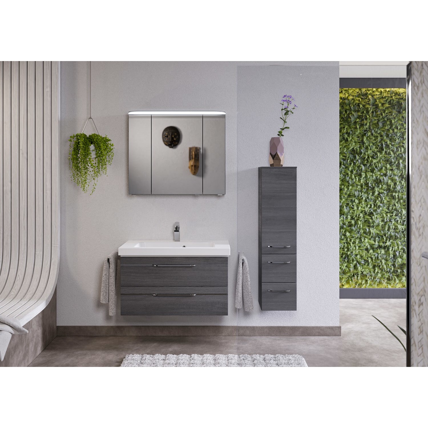 Pelipal Balto Badmöbel-Set 92,4 cm, inkl. Spiegelschrank und Midischrank
