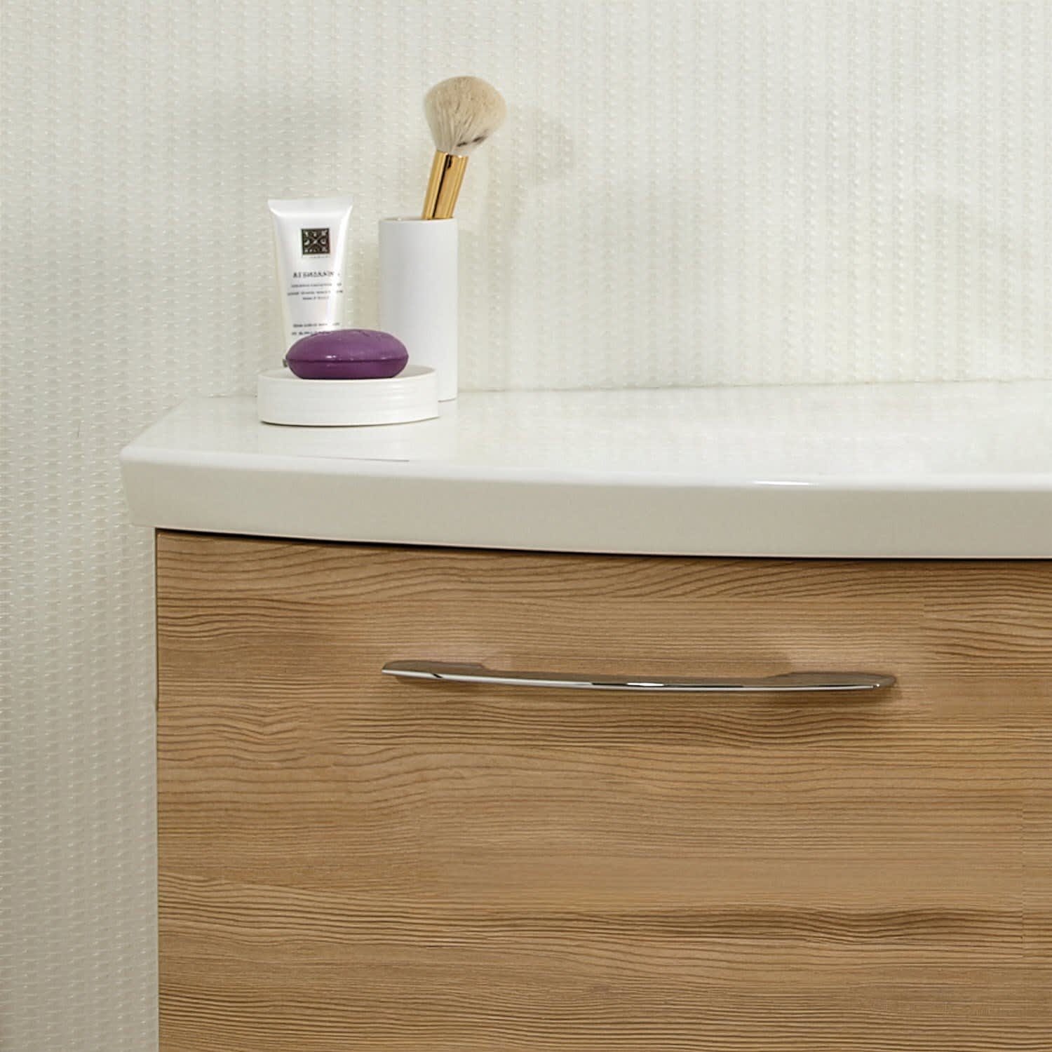Neben genügend Stauraum verfügt der moderne Spiegelschrank über eine Schalter-Steckdosen-Einheit und eine LED-Aufsatzleuchte, die den Waschplatz in ein optimales Licht setzen. Durch die Türdämpfer schließen die Spiegeltüren komplett leise. Der Mineralmarmor-Waschtisch in weiß besteht aus langlebigem, natürlichem Material ohne Zusatzstoffe und überzeugt durch eine hochglänzende, pflegeleichte, kratzfeste und stabile Oberfläche. Die Waschtischunterschränke sind mit geräumigen, leichtlaufenden Schubkästen und dazugehörigen schönen chromglänzenden Griffen ausgestattet, die bei der täglichen Ordnung im Bad unersetzlich sind. Der Unterschrank verbirgt viele Utensilien des Alltags, praktisch und schick.