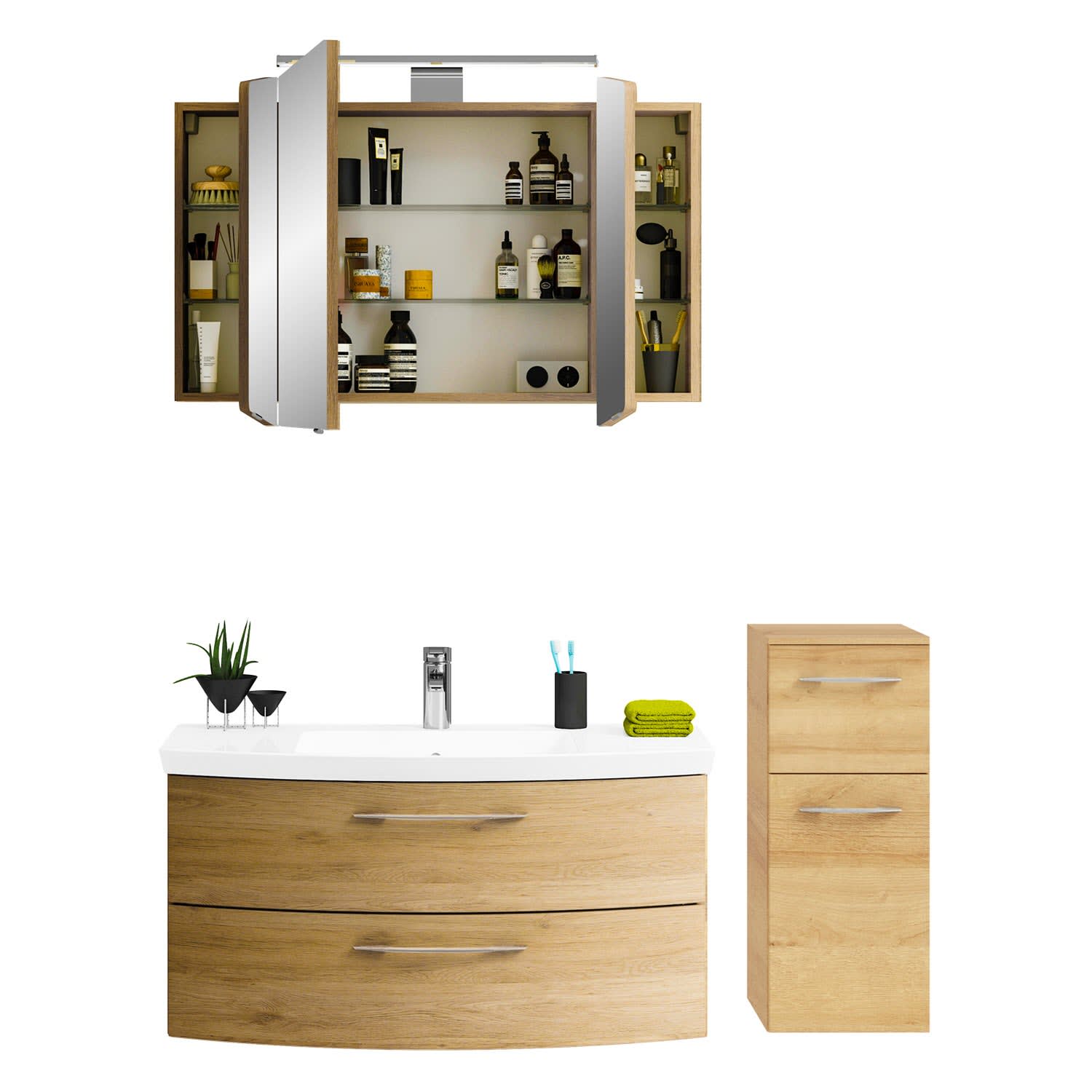 Pelipal Cassca Badmöbel-Set 101 cm, inkl. Spiegelschrank und Highboard