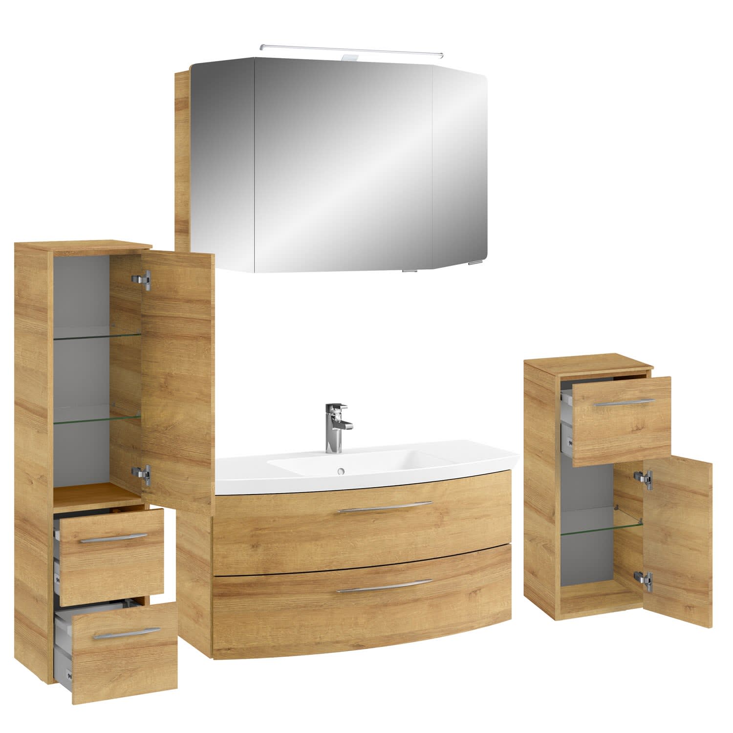 inkl. Spiegelschrank, Highboard und Midischrank