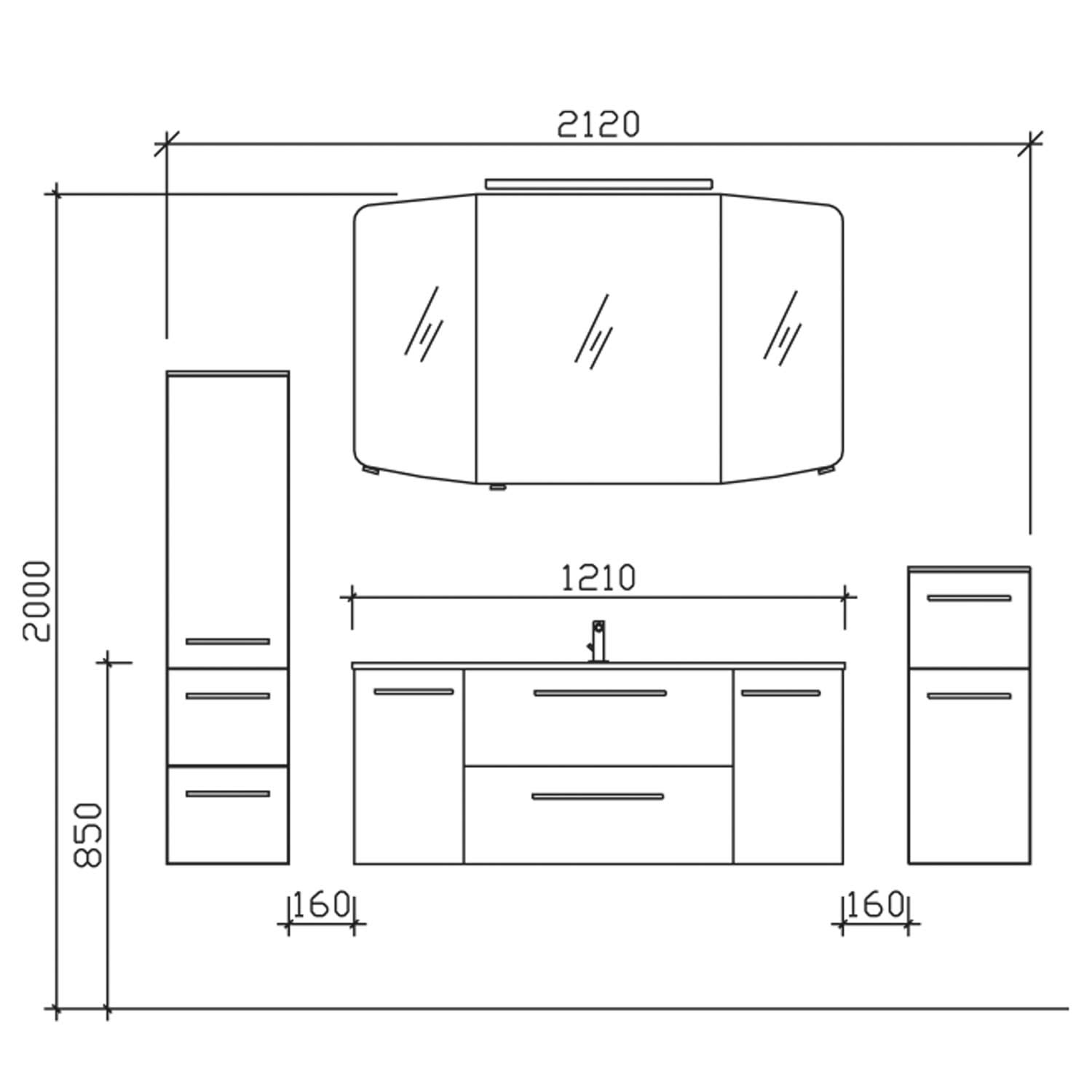 Pelipal Cassca Badmöbel-Set 121 cm, inkl. Spiegelschrank, Highboard und Midischrank