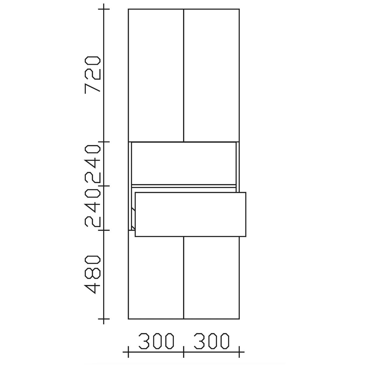 1 offenes Fach, 1 Auszug, 4 Drehtüren