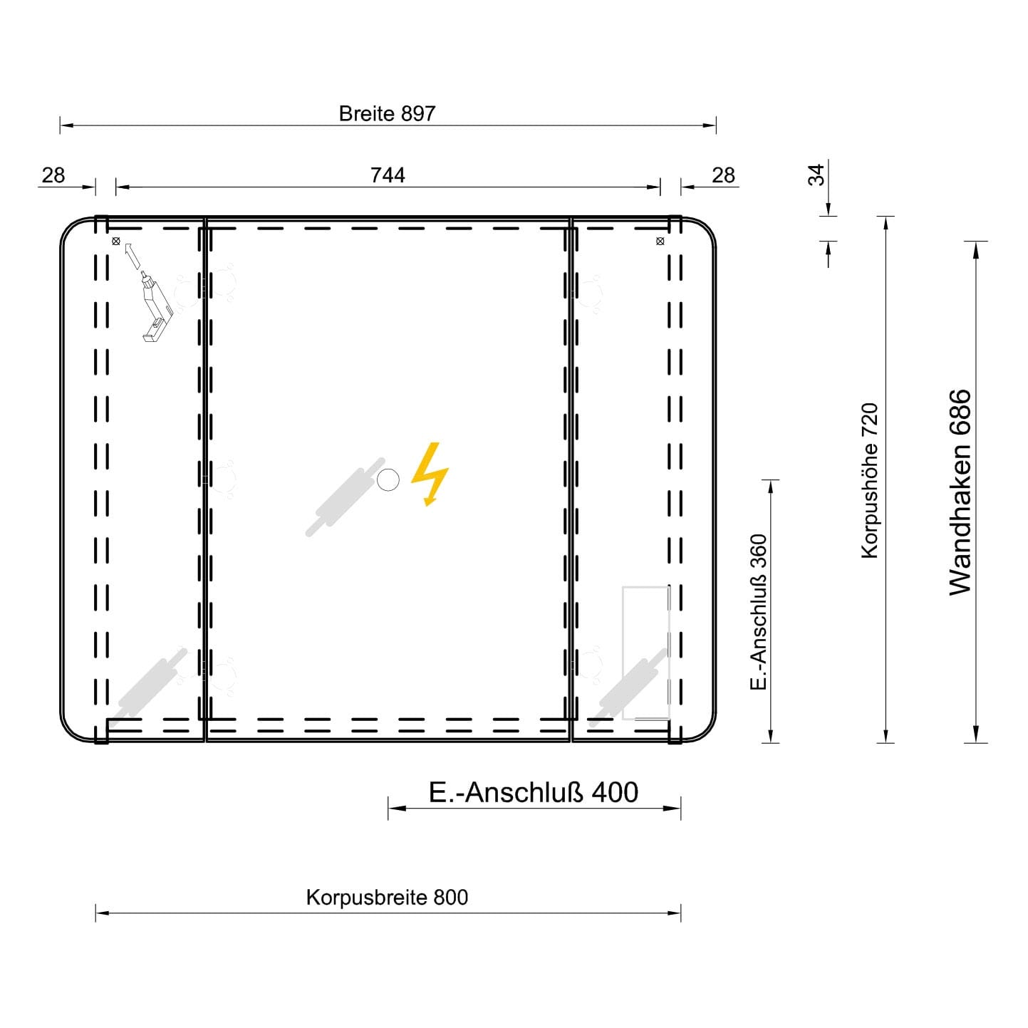 - Türbreite mittig 42 cm, Türbreite links und rechts 24 cm