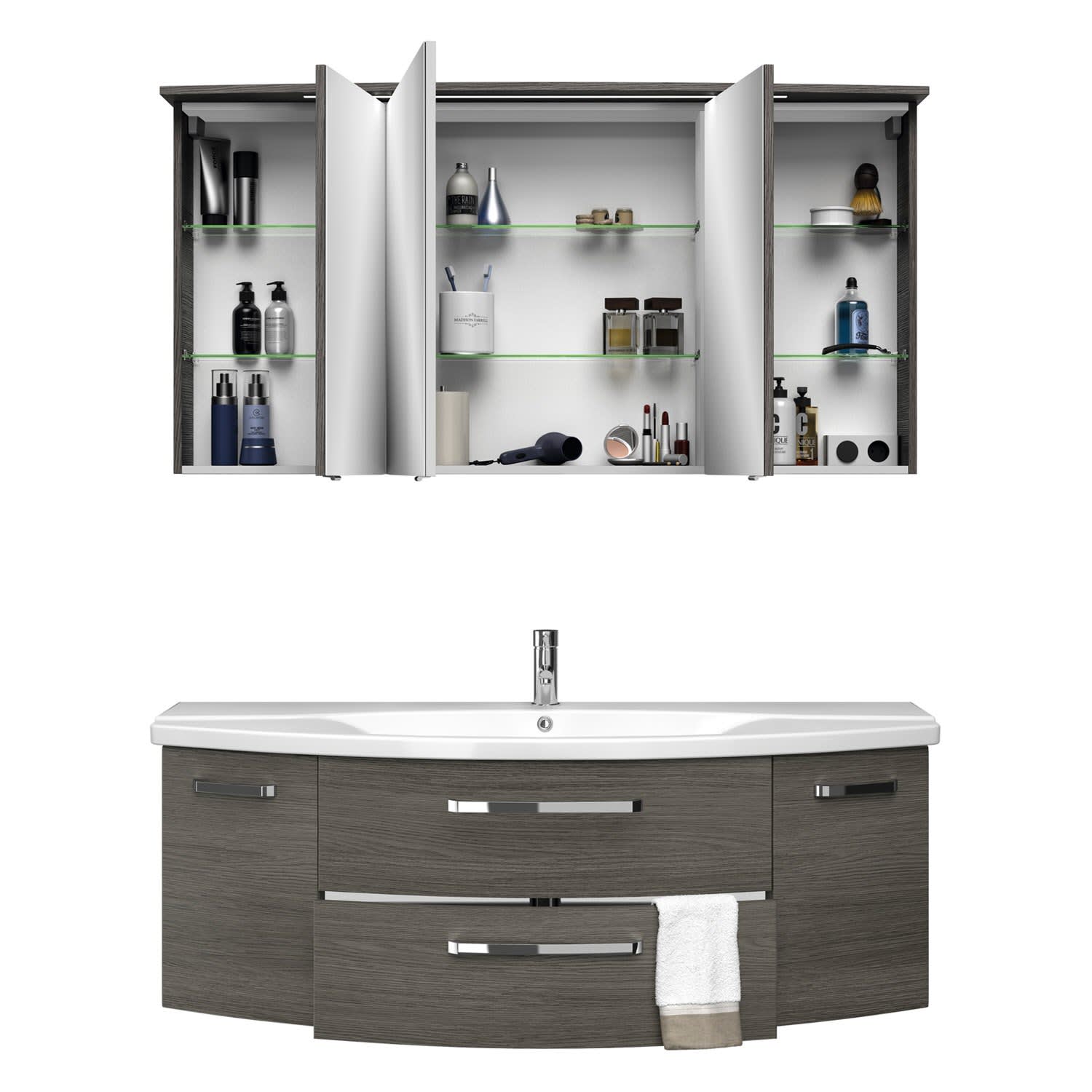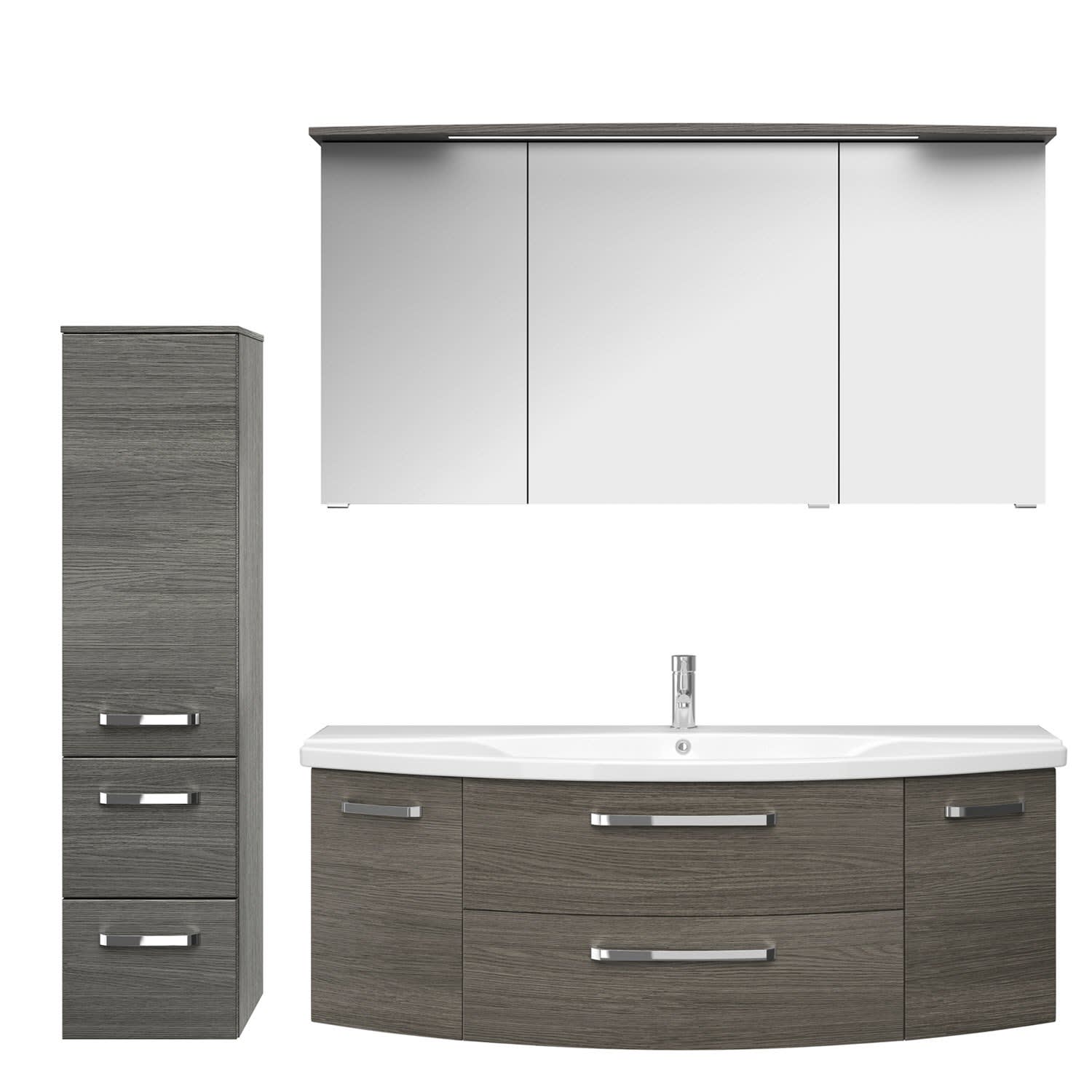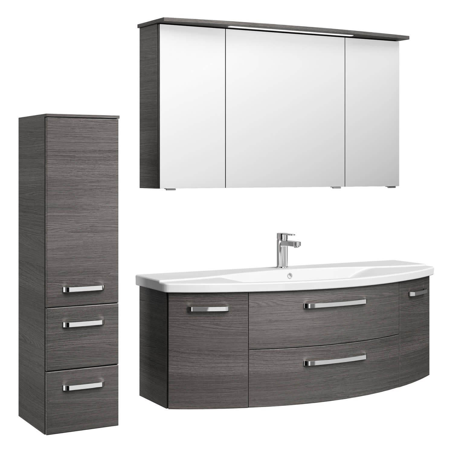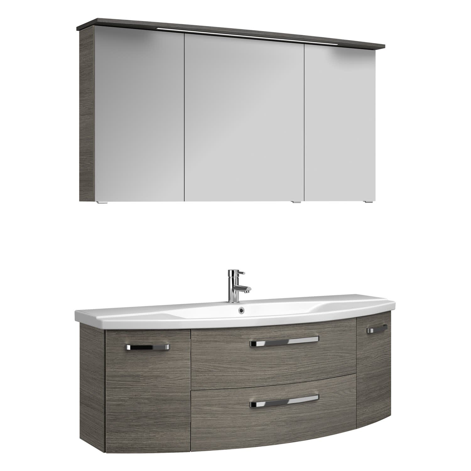 Pelipal Serie 4010 Möbelkombination 140 cm mit Spiegelschrank mit LED-Kranzbeleuchtung, Keramikwaschtisch und Waschtischunterschrank