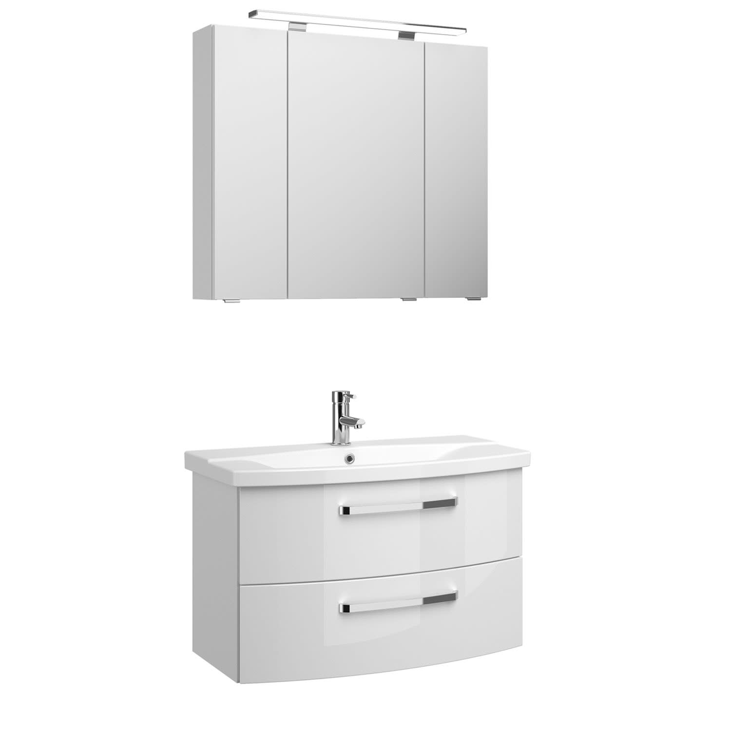 Pelipal Serie 4010 Möbelkombination 80 cm mit Spiegelschrank mit LED-Aufsatzleuchte, Keramikwaschtisch und Waschtischunterschrank