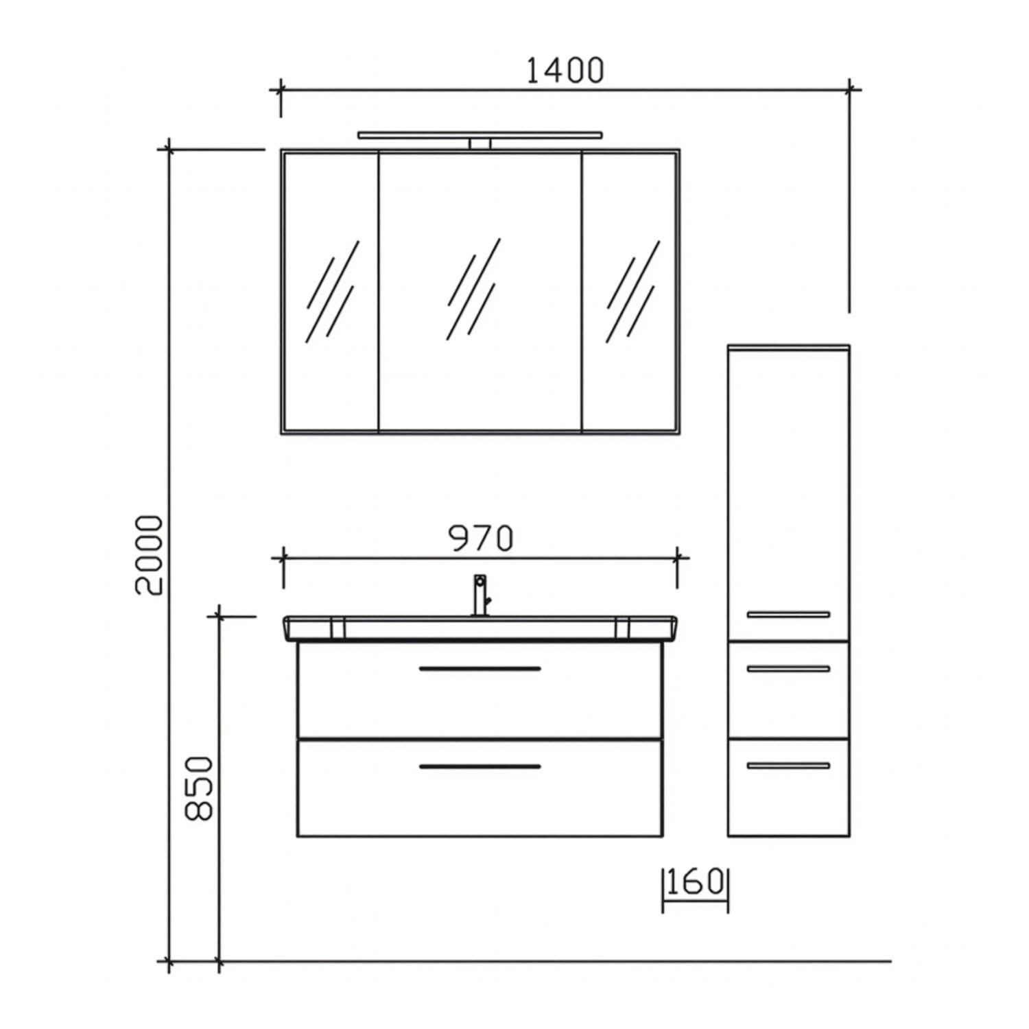 inkl. Spiegelschrank und Midischrank