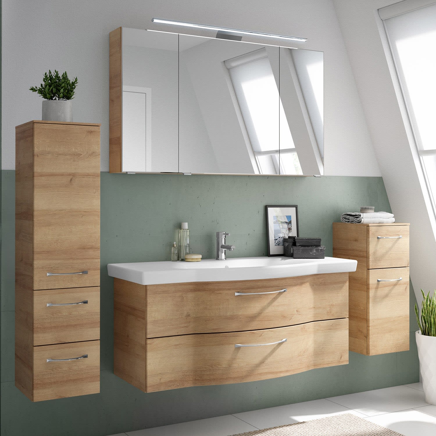 Pelipal Serie 6005 Badmöbel-Set 122 cm, inkl. Spiegelschrank, Highboard und Midischrank