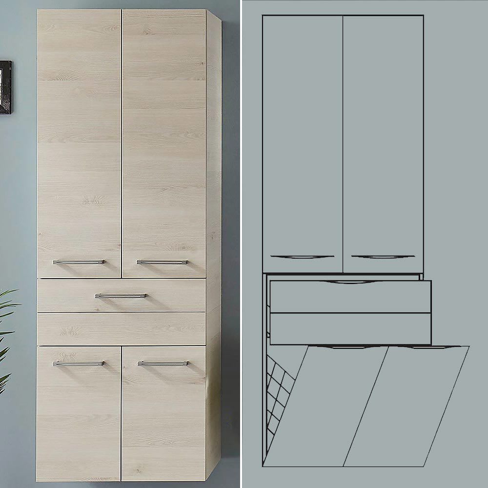 Pelipal Serie 6025 Hochschrank 60 x 33 x 168 cm mit 2 Drehtüren, 2 Wäschekippen, Griff R1