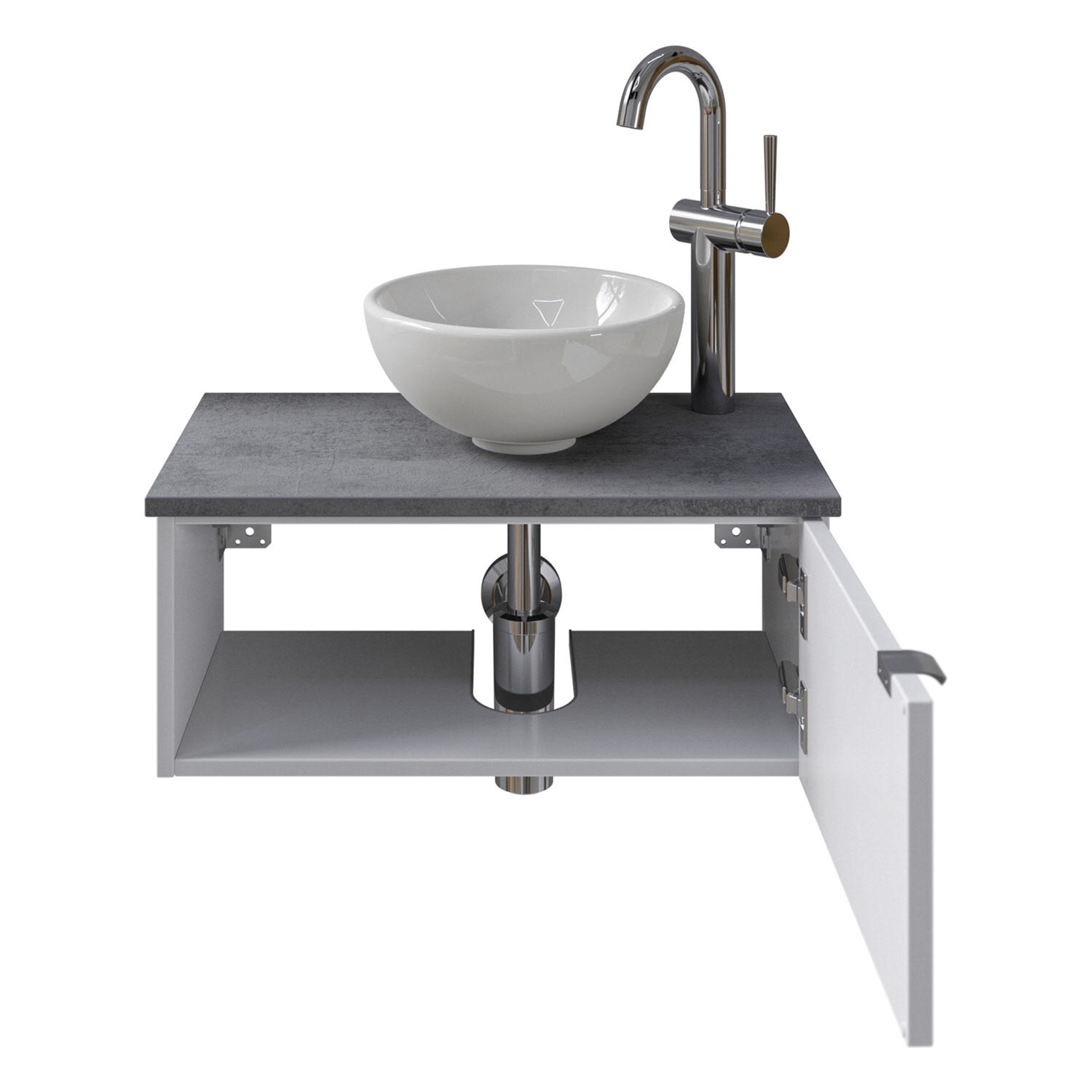 - inkl. Ausschnitt für Armaturbohrung und Aufsatzwaschtisch