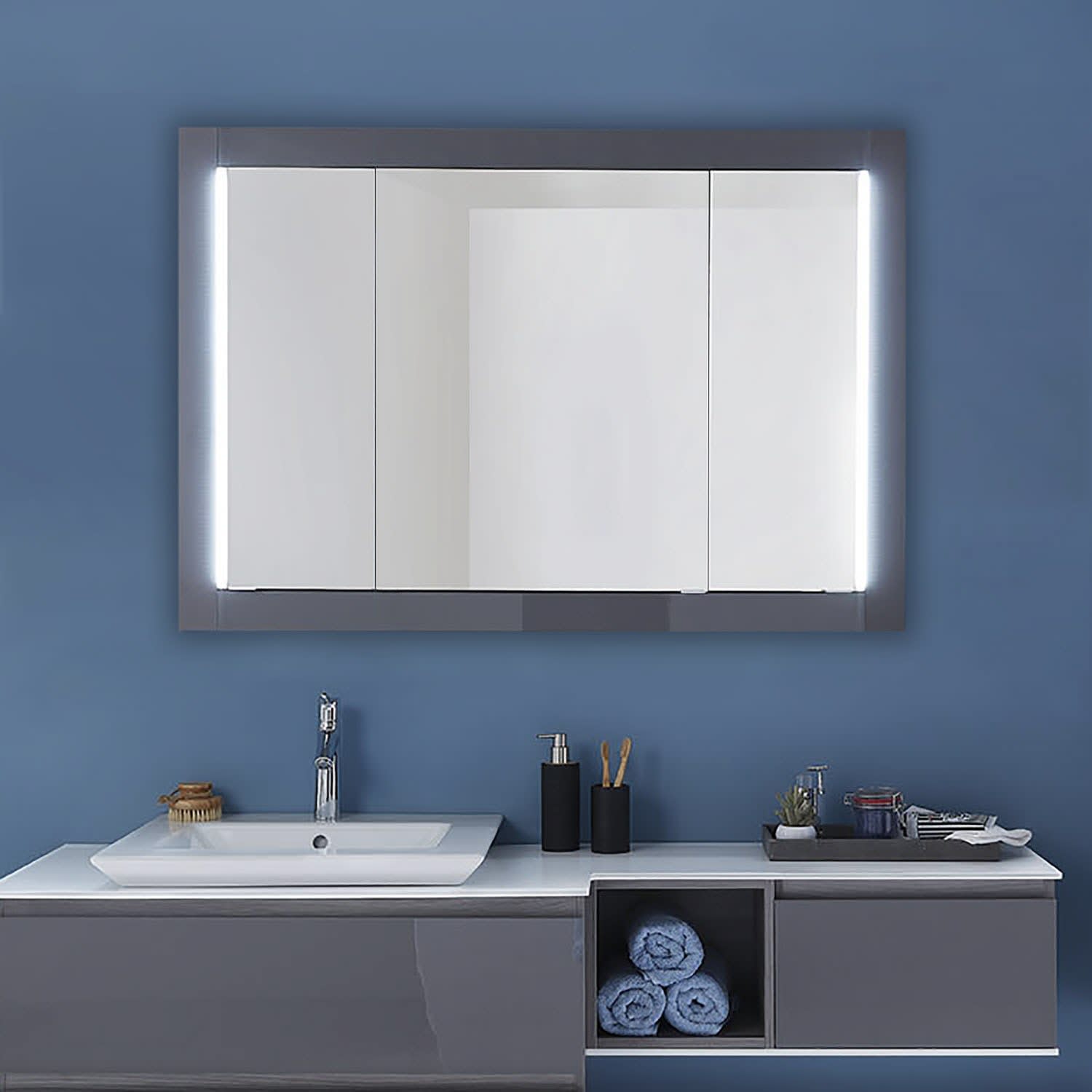 Pelipal PCON LED Einbauspiegelschrank 121,5 x 17 x 83,4 cm 3 Drehtüren