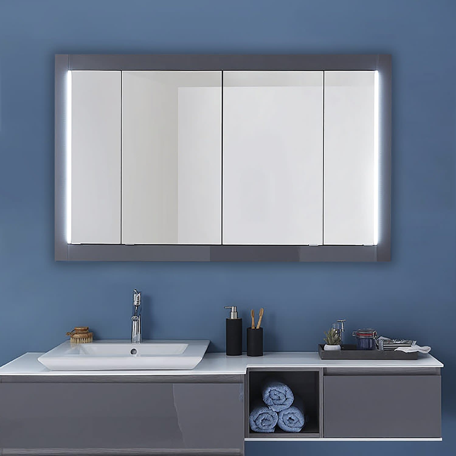 Pelipal PCON LED Einbauspiegelschrank 136,5 x 17 x 83,4 cm 4 Drehtüren