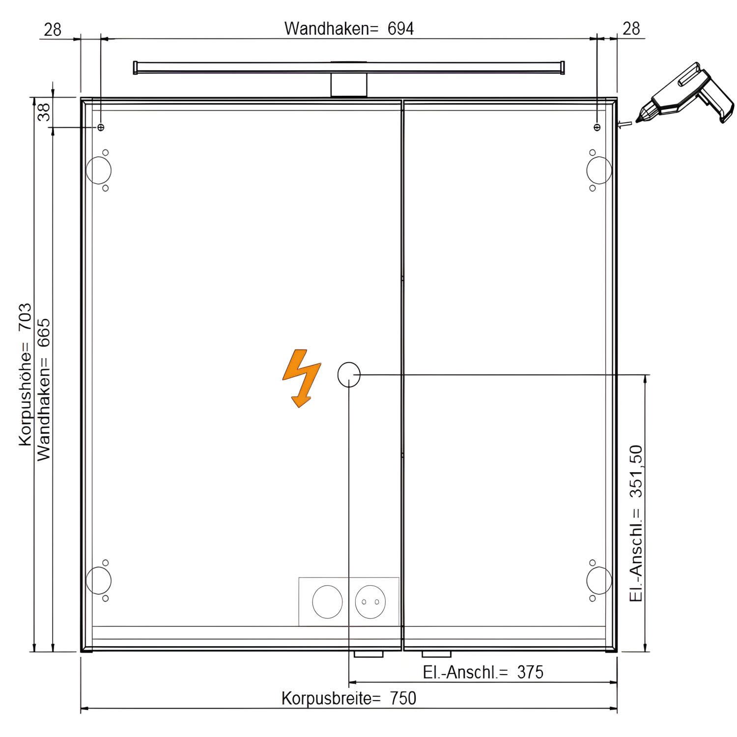 Pelipal Serie 6005 Spiegelschrank 75 cm mit LED-Aufsatzleuchte