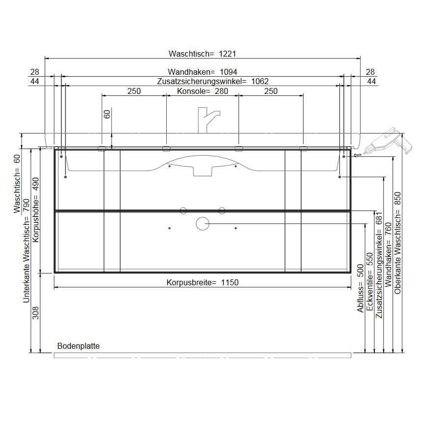 Pelipal Serie 6005 Waschtischkombination 122 cm