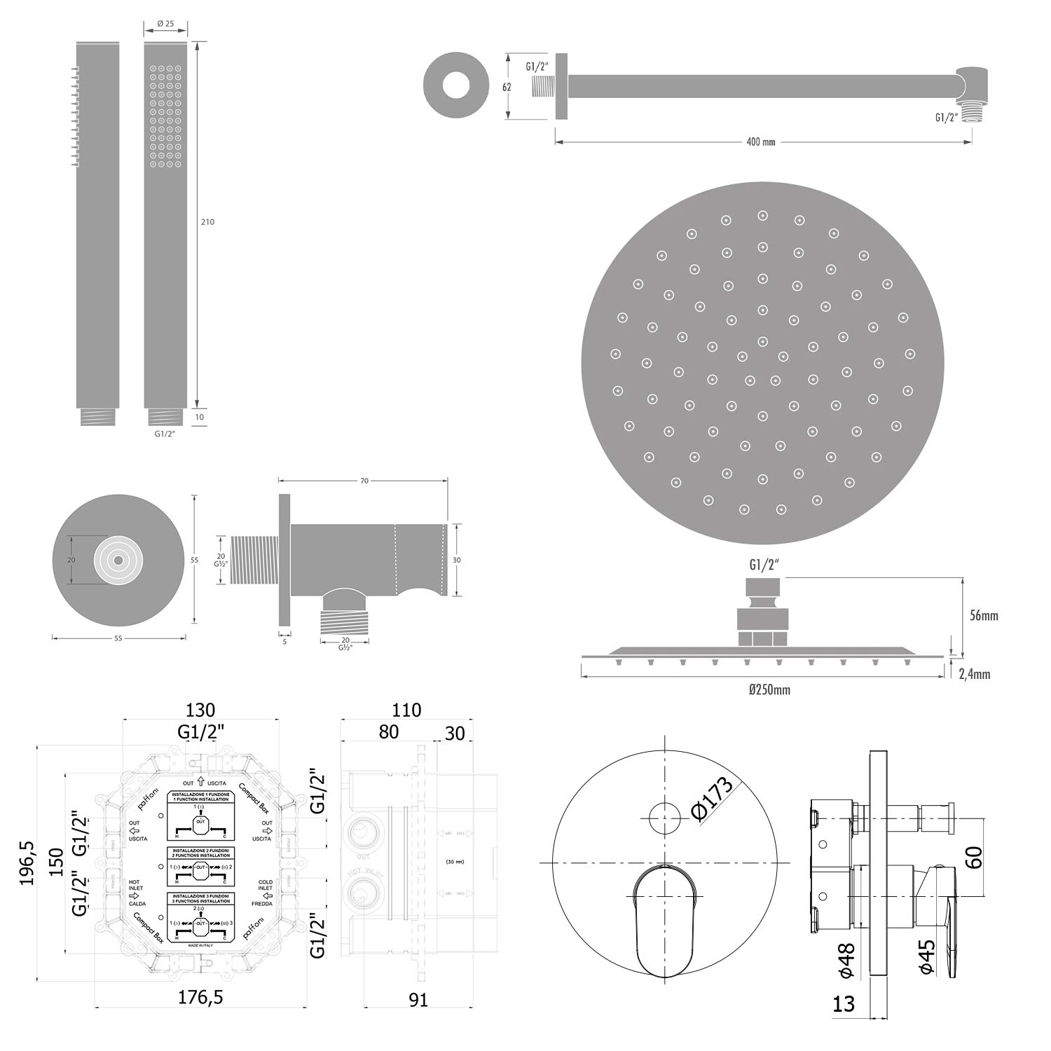 pianura Aora Duschsystem Unterputz mit Einhebelmischer für 2 Verbraucher