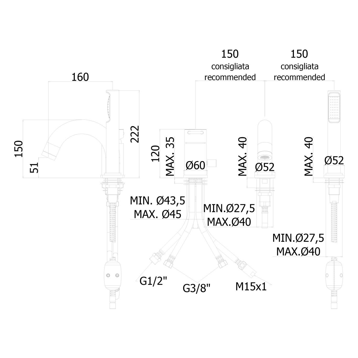 pianura Stella Dreiloch-Wannenrand-Einhebelmischer mit erhöhter Durchflussleistung