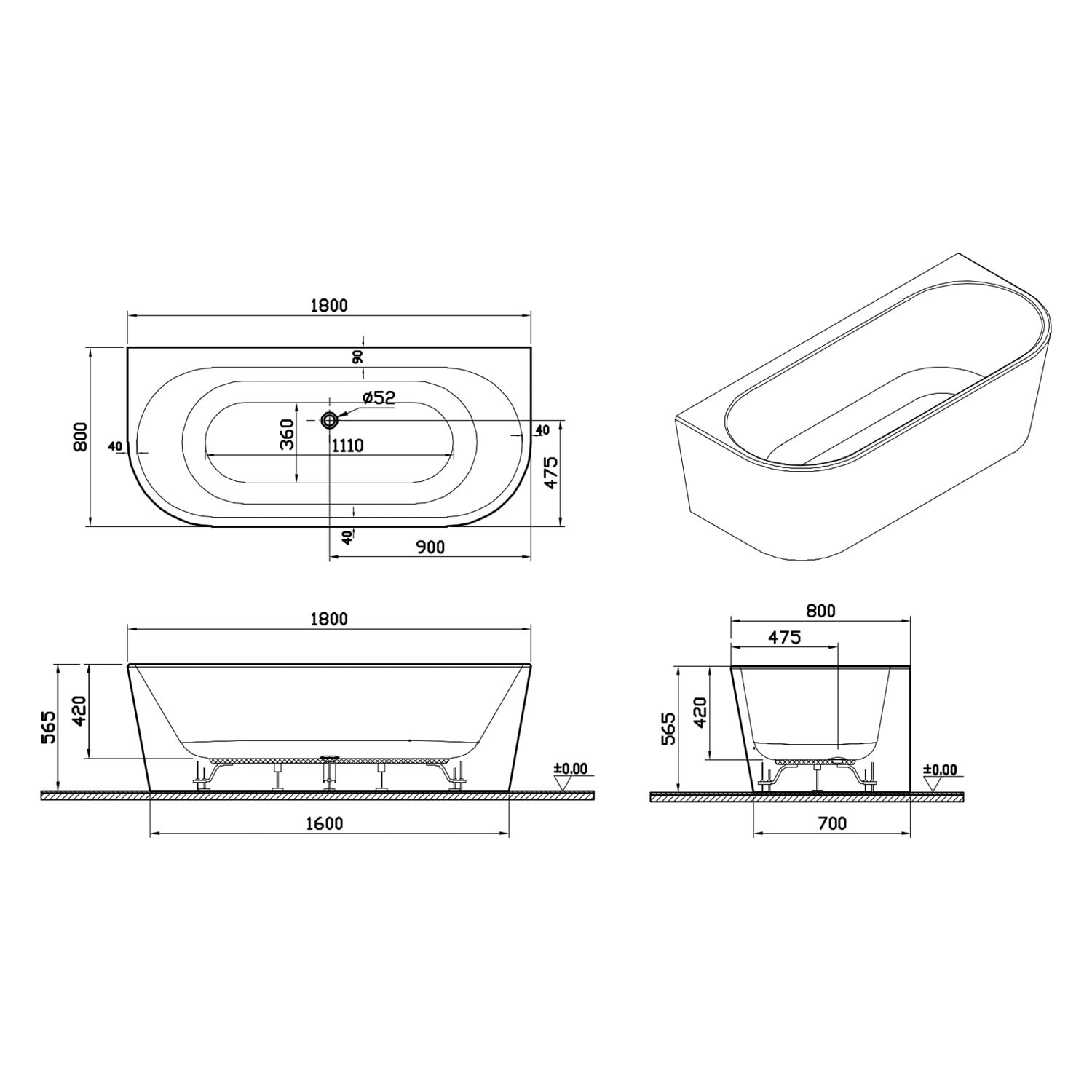 pianura Valentina Vorwand-Badewanne 180 x 80 cm