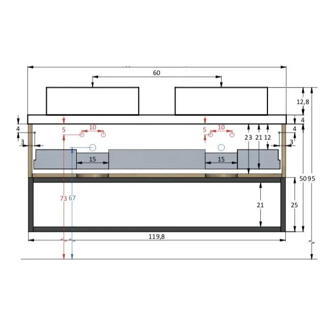 pianura Stella Waschtischunterschrank 120,5 cm mit Doppel-Aufsatzwaschtisch Sole