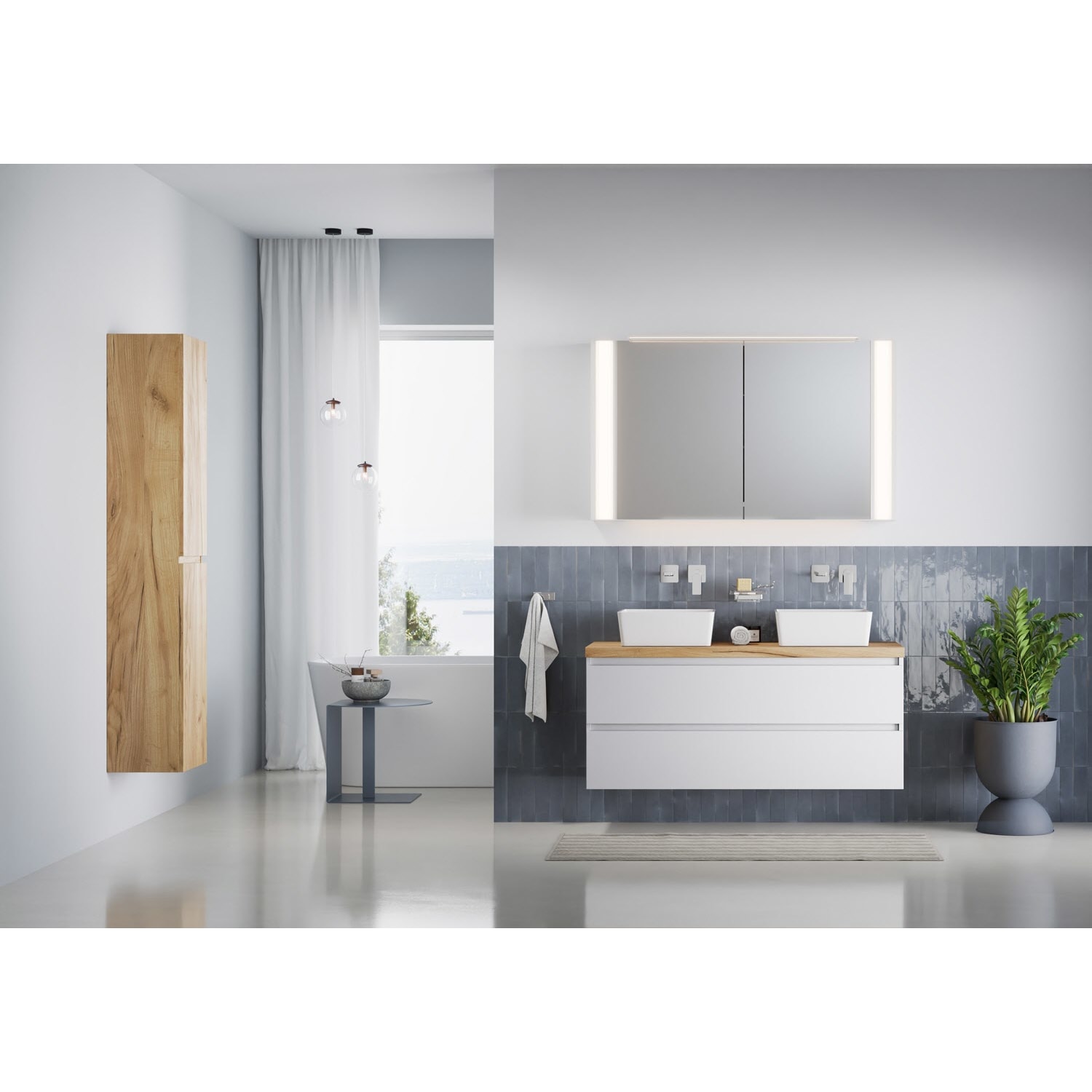pianura Stella Waschtischunterschrank 140,5 cm mit Doppel-Aufsatzwaschtisch Sole