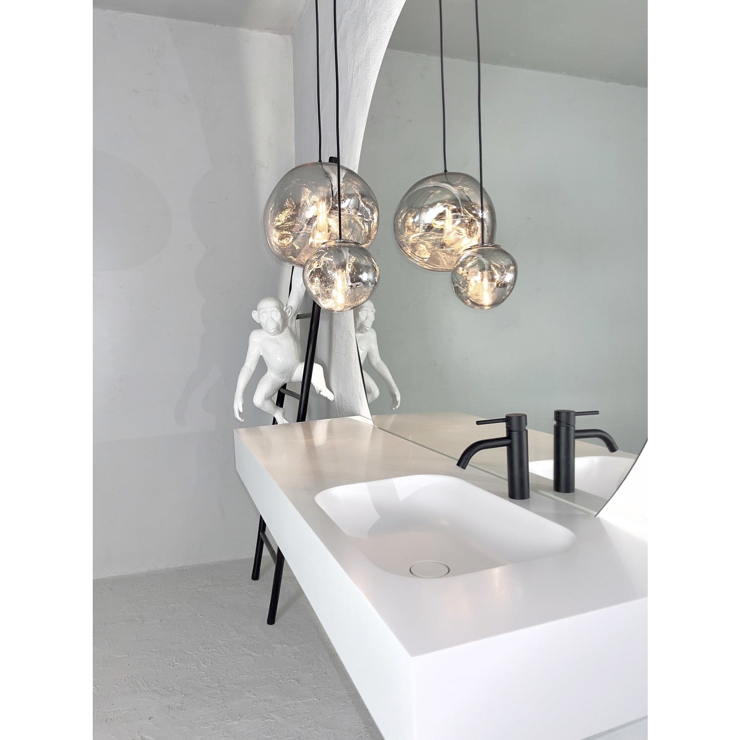 Waschbecken rechts, mit Leuchten-Set
