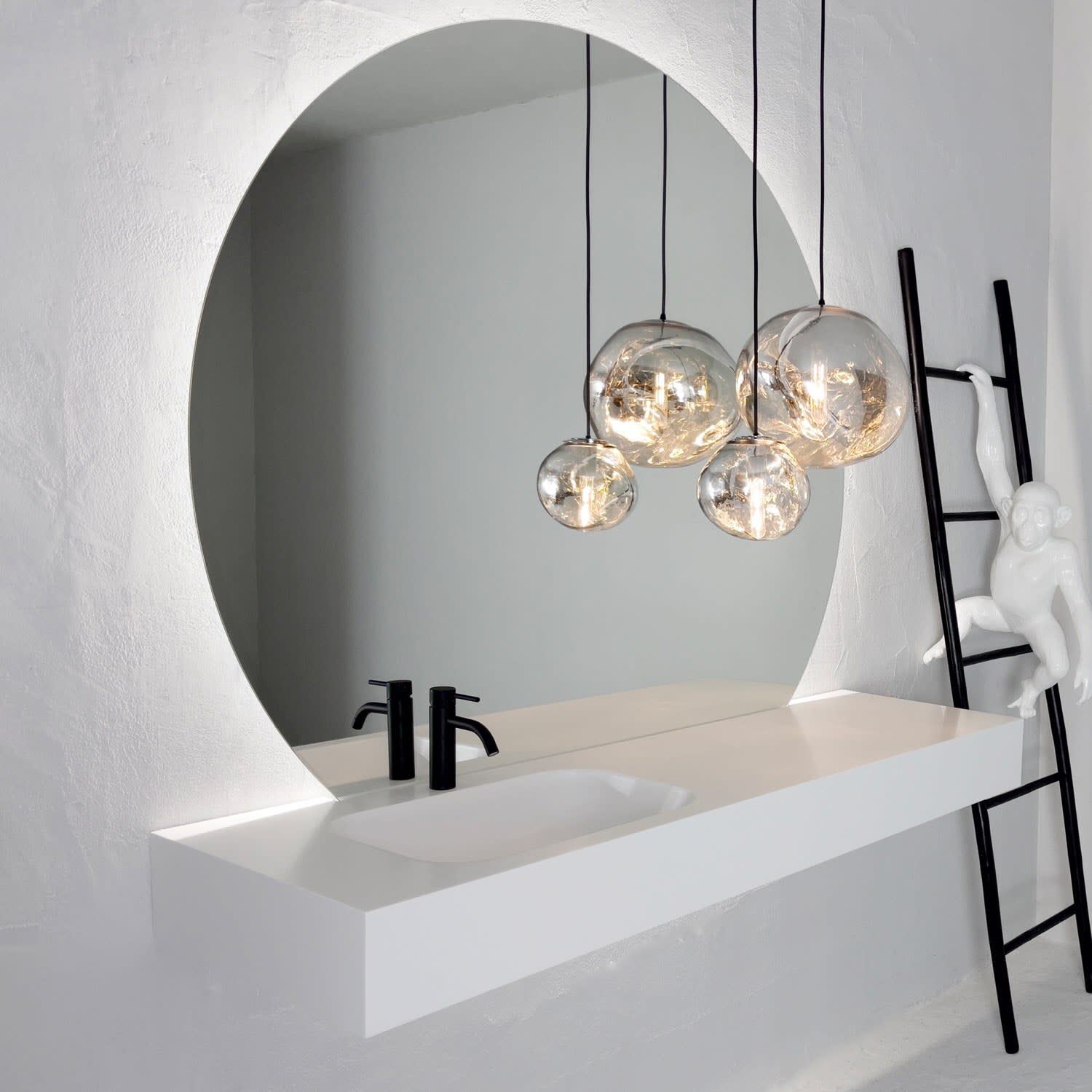 pianura Emilia Badmöbel Set 160 cm mit LED-Lichtspiegel und Hängeleuchten, Becken links
