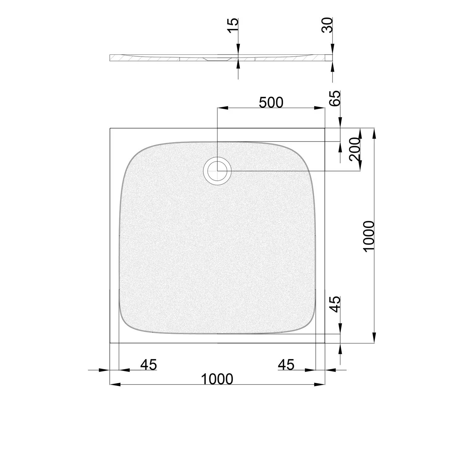 pianura Emilia mineral Duschwanne 100 x 100 x 3 cm mit Antirutsch