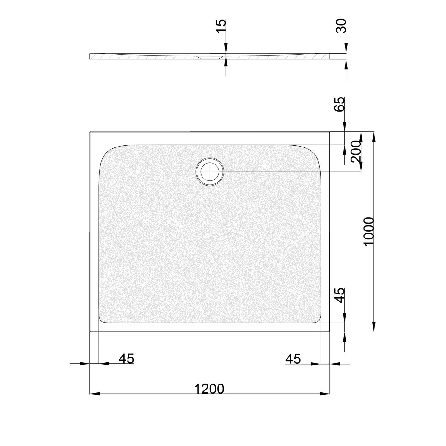 pianura Emilia mineral Duschwanne 120 x 100 x 3 cm mit Antirutsch