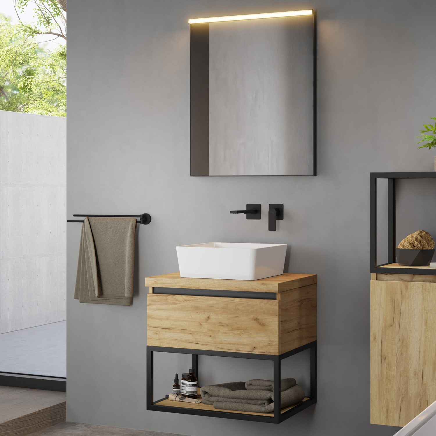 Duravit D-Neo Möbelset mit eckigem Spiegel 65 cm