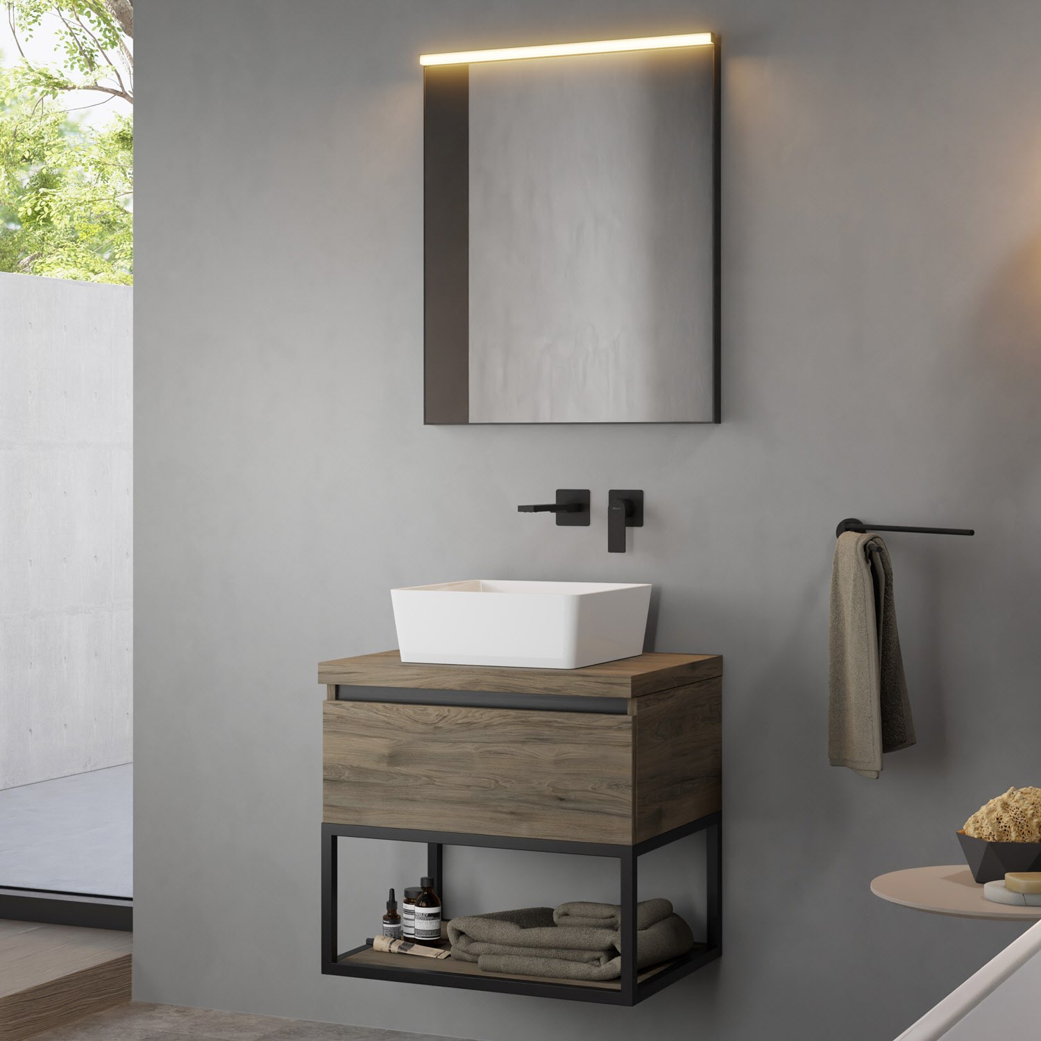 Duravit D-Neo Möbelset mit eckigem Spiegel 65 cm