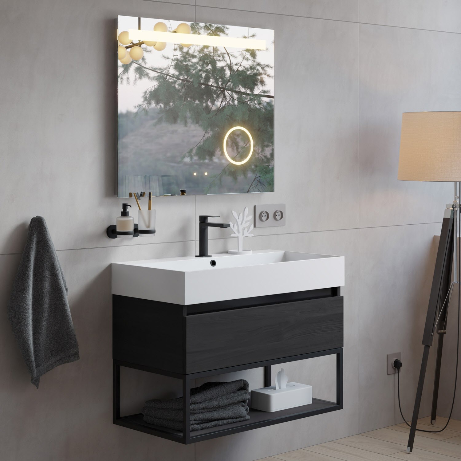 pianura Giulia Badmöbel Set 81 cm mit LED-Lichtspiegel, mit 1 Hahnloch
