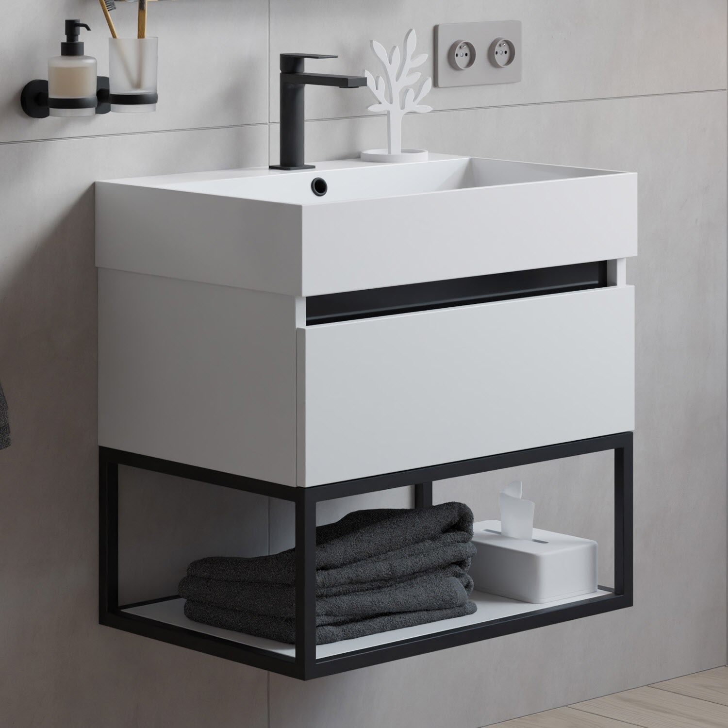 OLTENS Vernal Waschtischunterschrank mit Waschbecken 61 x 25,4 cm, mit 1 Schublade