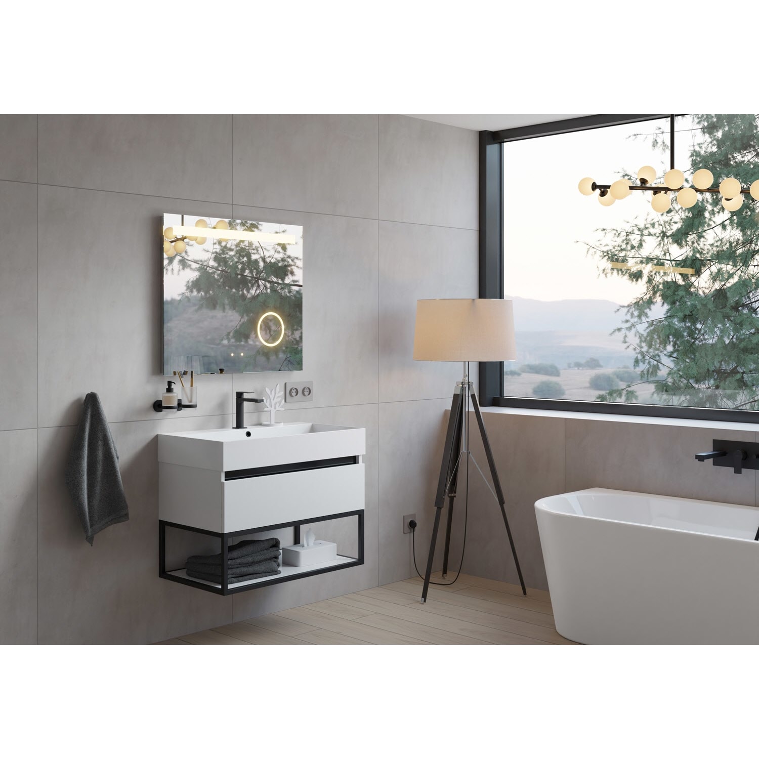 pianura Mia LED Badspiegel 80 x 70 cm mit Spiegelheizung und Beleuchtung