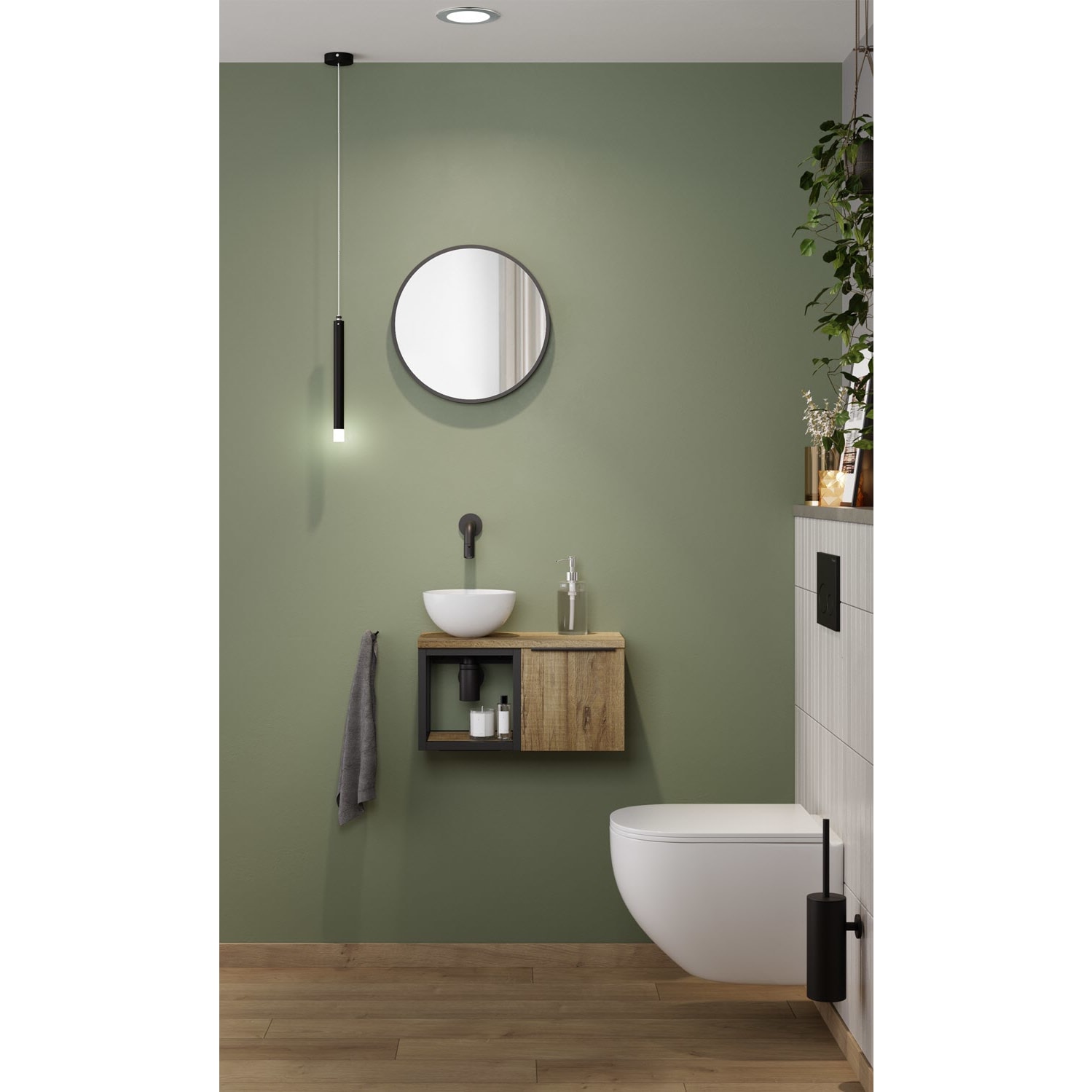burgbad Lavo 2.0 Gäste Bad Mineralguss-Waschtisch mit Waschtischunterschrank, Grifflos G0229, Hahnloch links
