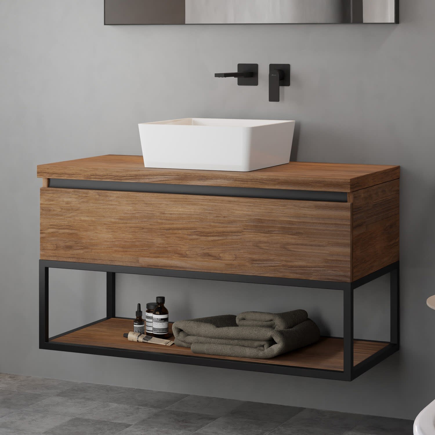 burgbad Eqio Waschtischkombination mit Keramik-Aufsatzwaschtisch 100 cm, mit Griff G0200
