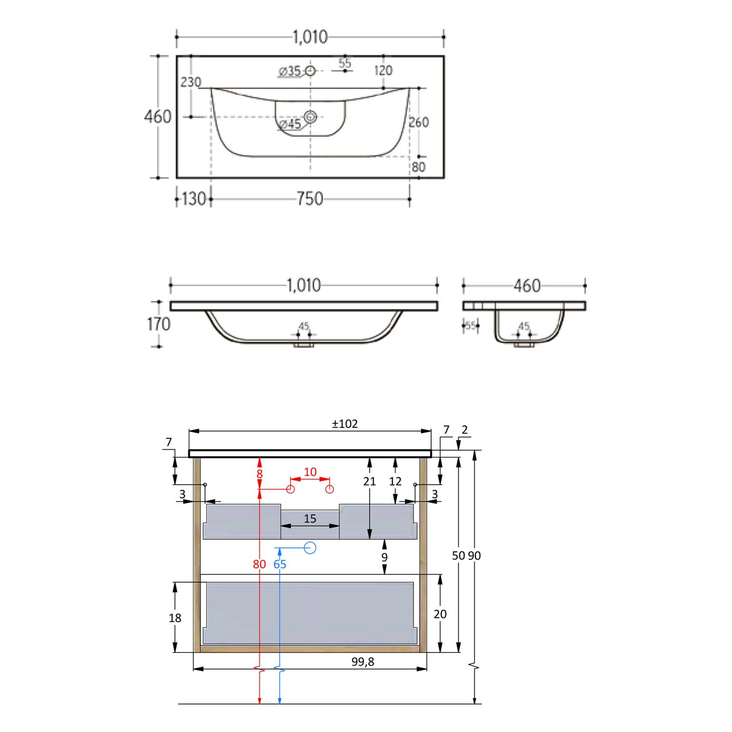- B: 102 T: 46 cm