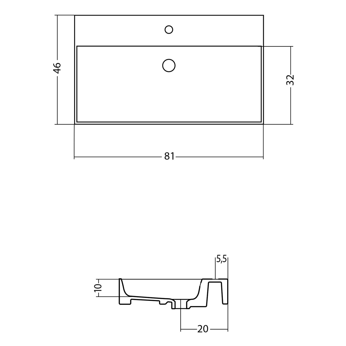 - B: 81 T: 46 H: 12 cm