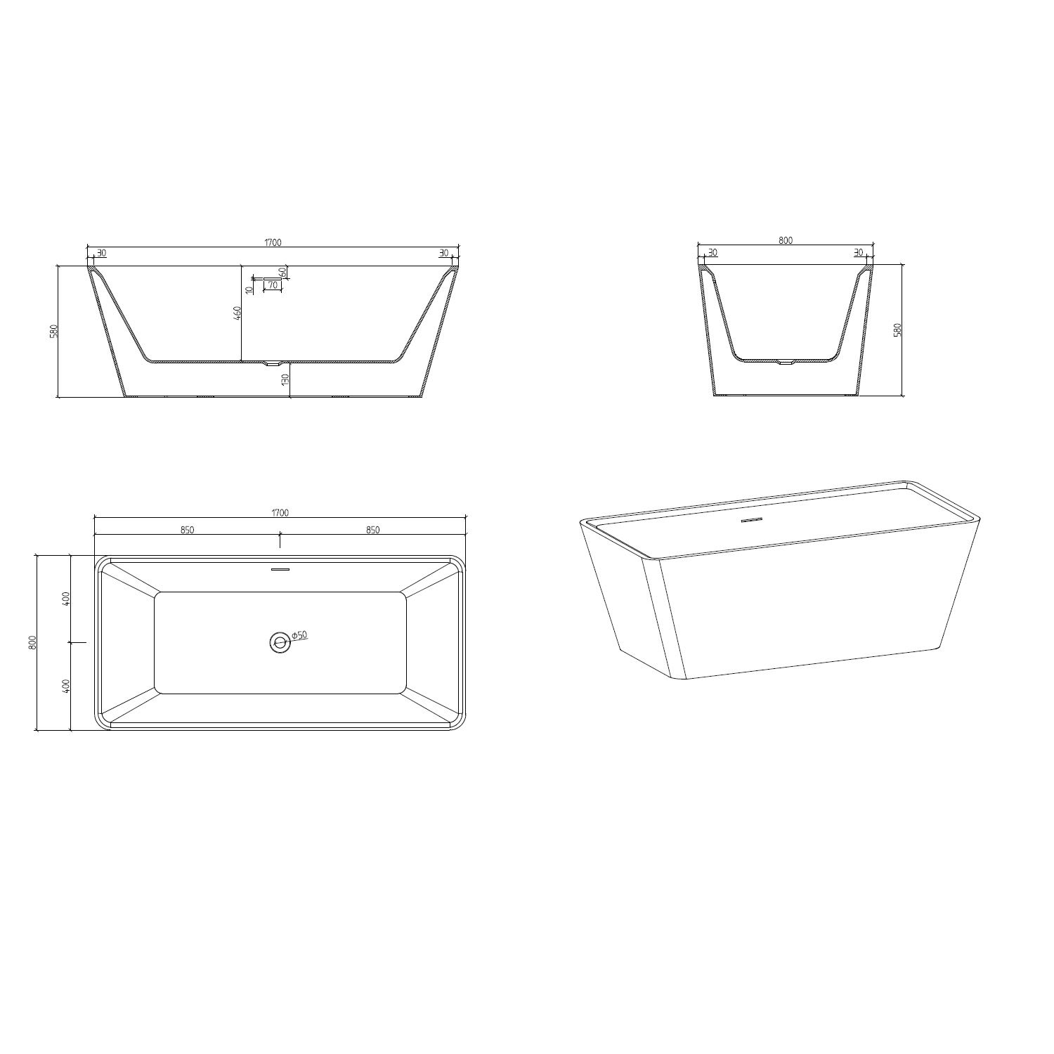 - freistehende Badewanne aus hochwertigem Sanitäracryl