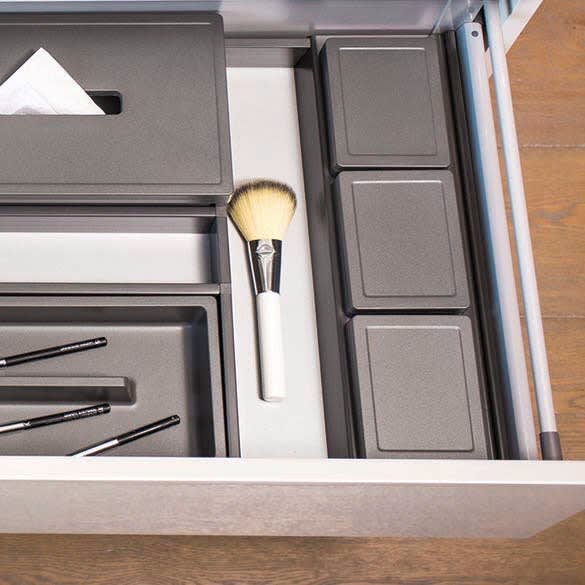 Mit der praktischen Accessory Box gelingt Ordnung im Waschtischunterschrank. Passend für den unteren Auszug finden hier Badutensilien wie Zahnpasta oder -bürsten, Creme oder Lotion ihren
