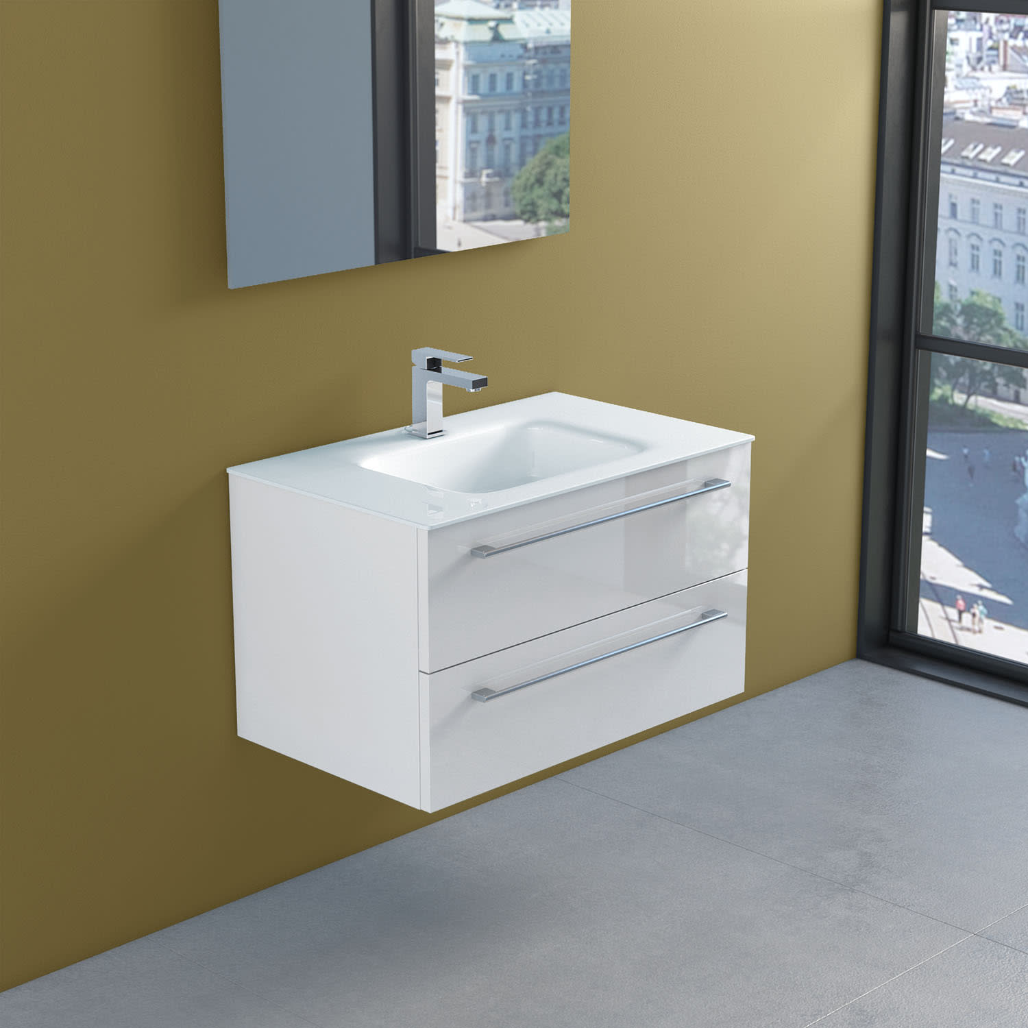 progettobagno Capri 75 Glaswaschtisch mit Unterschrank weiß glänzend