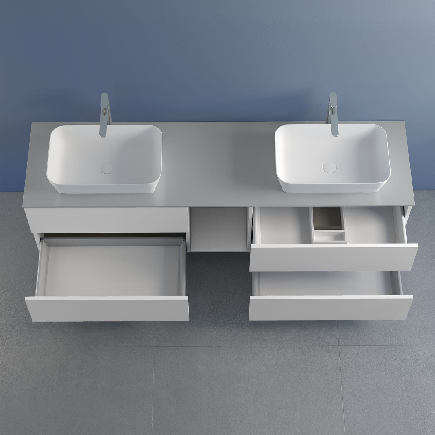 progettobagno Elba Doppel-Unterschrank 190 cm mit Glasplatte, Hahnlochbohrung und FLY 56 Aufsatzwaschtischen