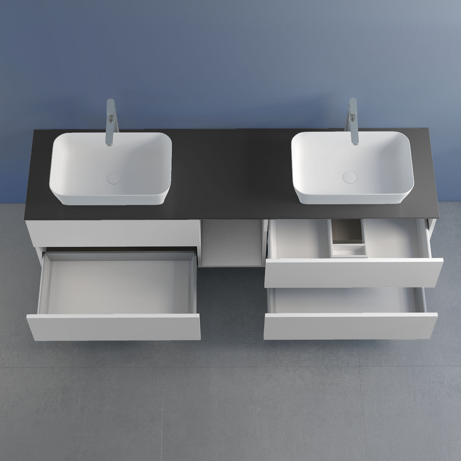 progettobagno Elba Doppel-Unterschrank 190 cm mit Glasplatte ohne Hahnlochbohrung und FLY 56 Aufsatzwaschtischen