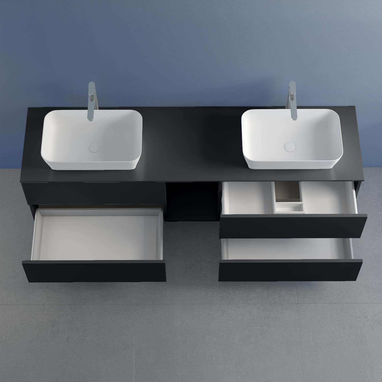 progettobagno Elba Doppel-Unterschrank 190 cm mit Glasplatte ohne Hahnlochbohrung und FLY 56 Aufsatzwaschtischen