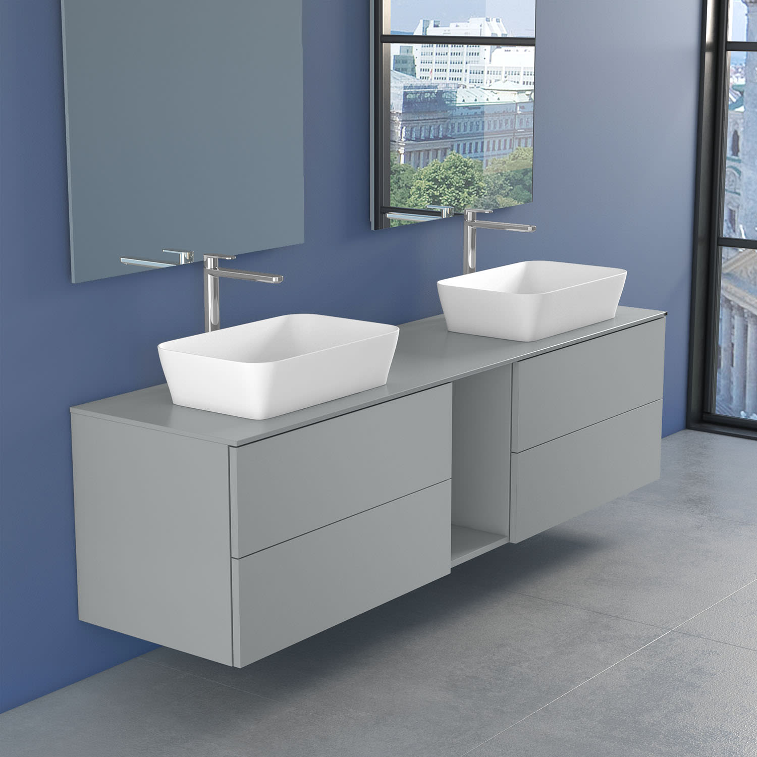 progettobagno Elba Doppel-Unterschrank 190 cm mit Glasplatte ohne Hahnlochbohrung und FLY 56 Aufsatzwaschtischen