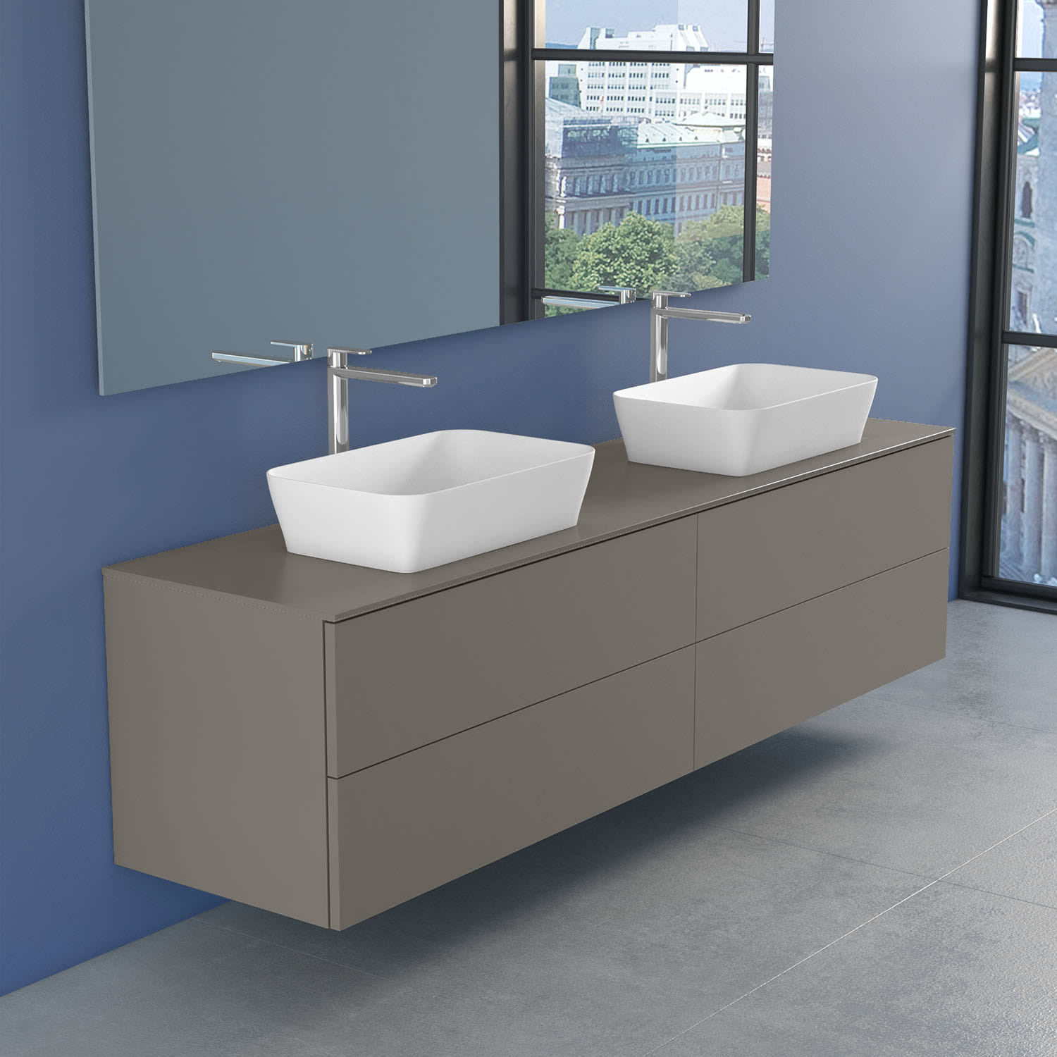 progettobagno Elba Doppel-Unterschrank 200 cm mit Glasplatte ohne Hahnlochbohrung und FLY 56 Aufsatzwaschtischen