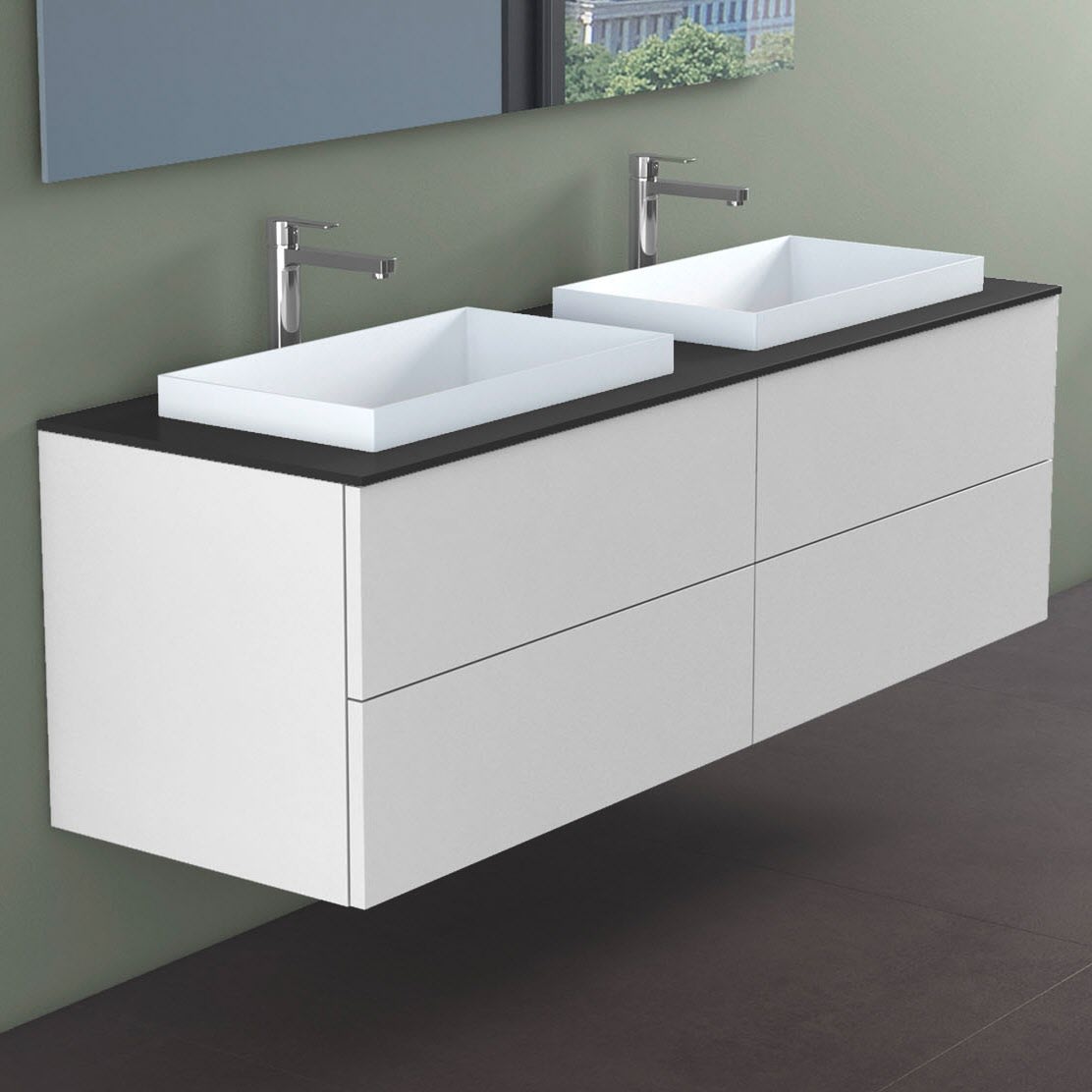progettobagno Elba Doppel-Unterschrank 160 cm mit Glasplatte, Hahnlochbohrung und ELY 60 Einbauwaschtischen