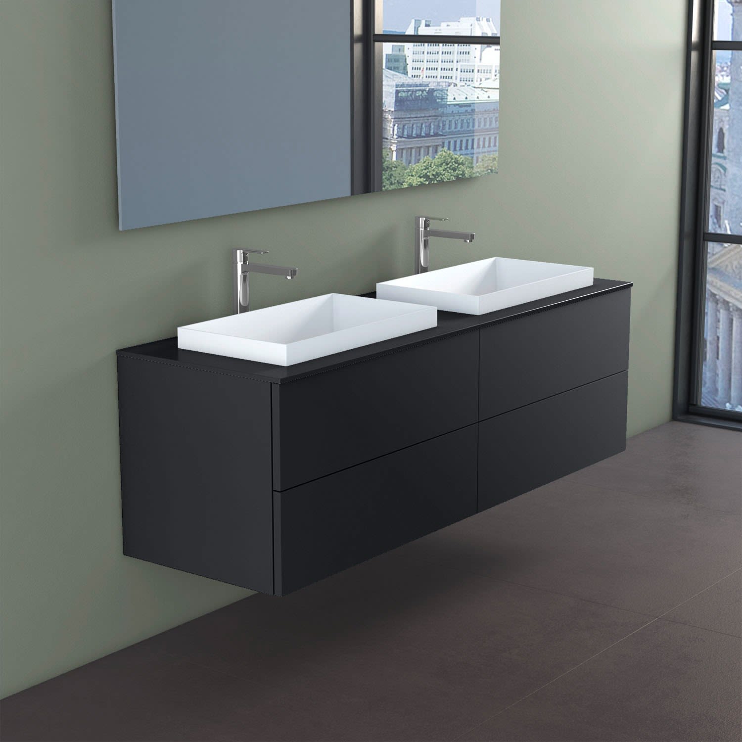 progettobagno Elba Doppel-Unterschrank 160 cm mit Glasplatte, Hahnlochbohrung und ELY 60 Einbauwaschtischen
