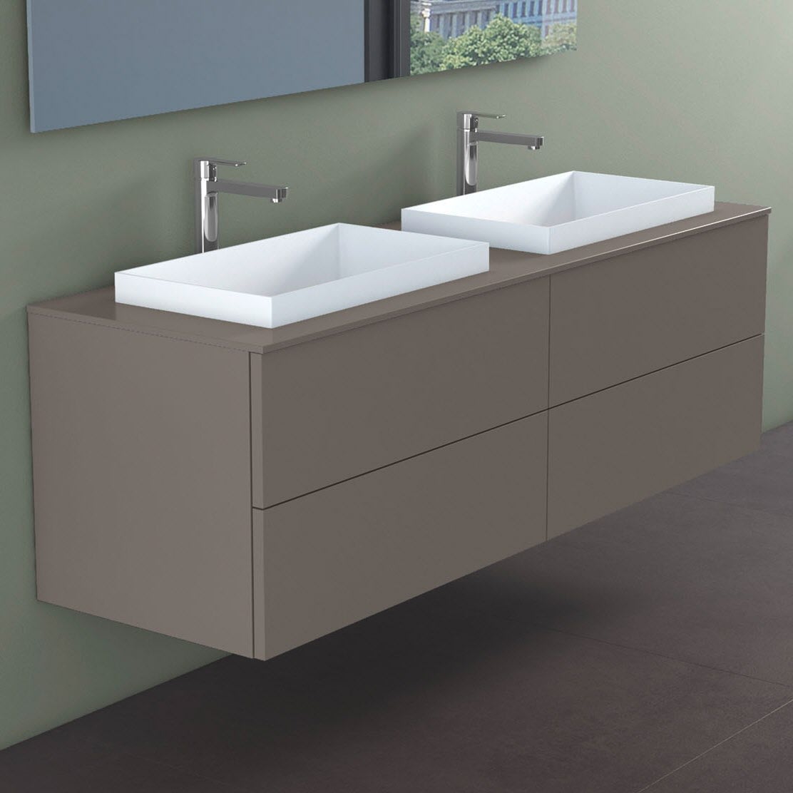 progettobagno Elba Doppel-Unterschrank 160 cm mit Glasplatte, Hahnlochbohrung und ELY 60 Einbauwaschtischen