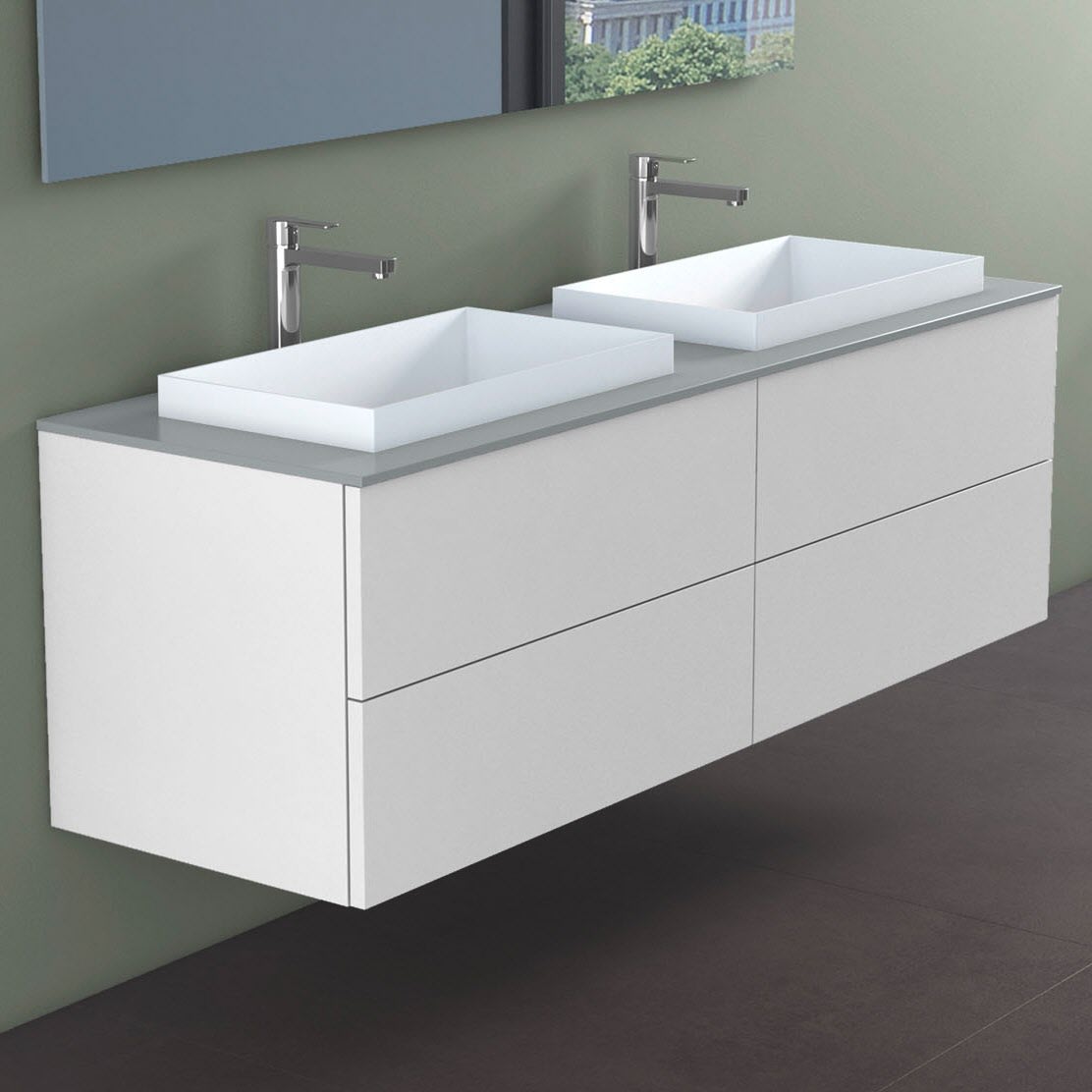 progettobagno Elba Doppel-Unterschrank 160 cm mit Glasplatte ohne Hahnlochbohrung und ELY 60 Einbauwaschtischen