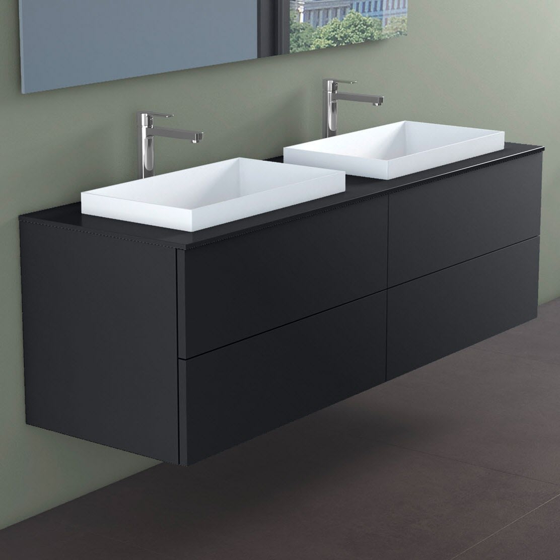 progettobagno Elba Doppel-Unterschrank 160 cm mit Glasplatte ohne Hahnlochbohrung und ELY 60 Einbauwaschtischen